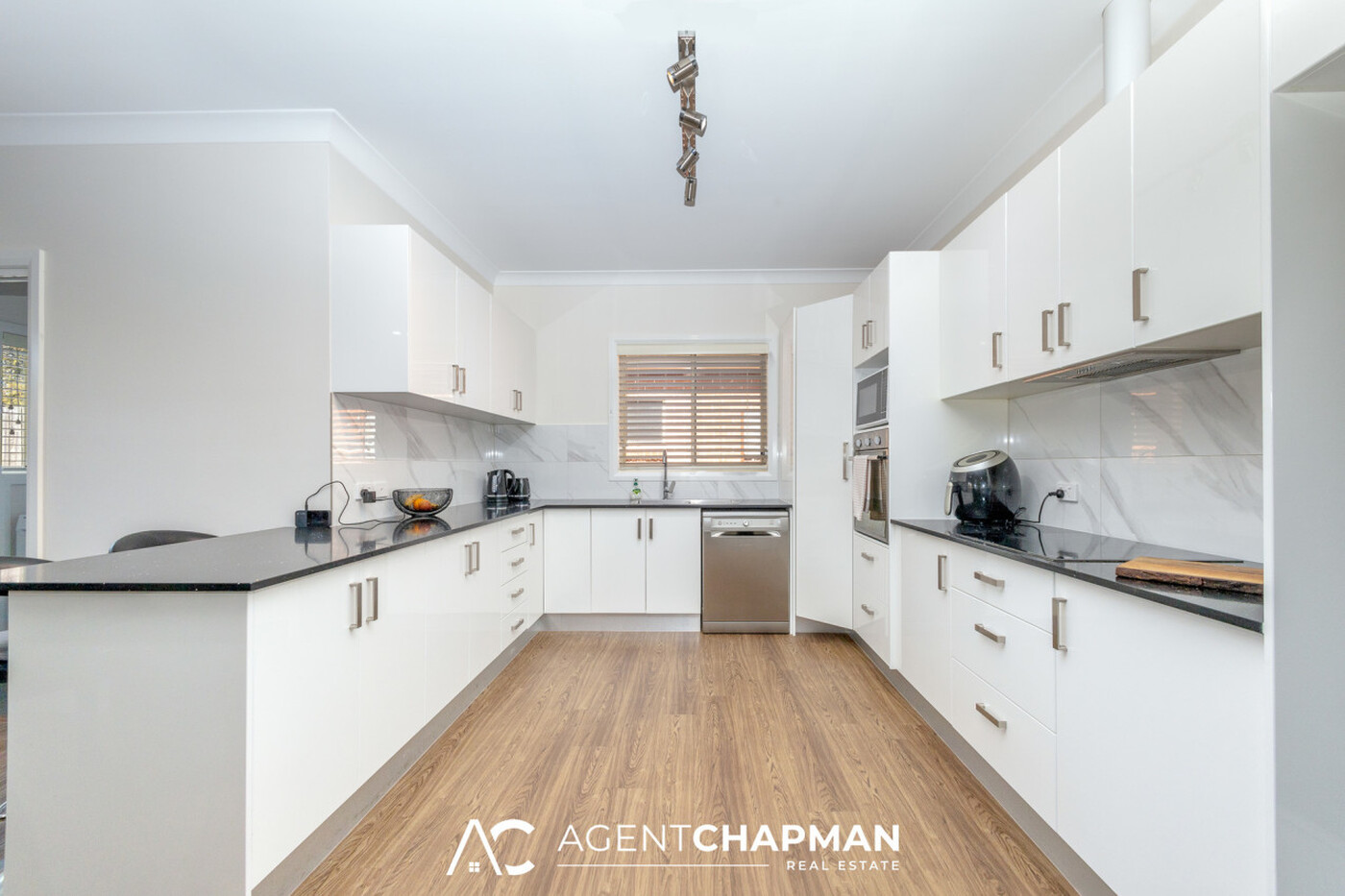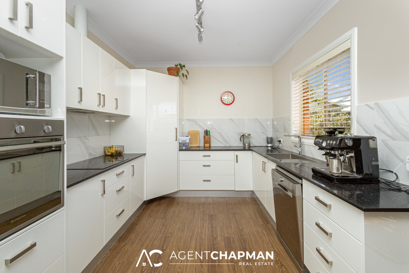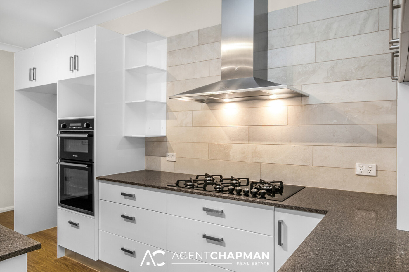 - Modern kitchen with gas cooktop, oven, dishwasher and plenty of cupboard space.