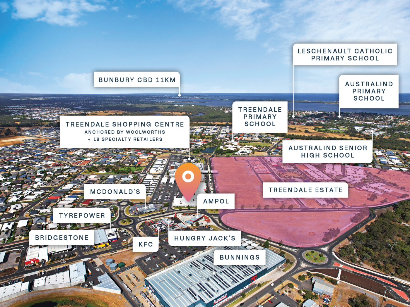 + Strategically situated amongst an expanding retail precinct, adjoining the Woolworths-anchored Treendale Shopping Centre, and within metres from McDonald’s, Hungry Jacks, KFC, and Bunnings.