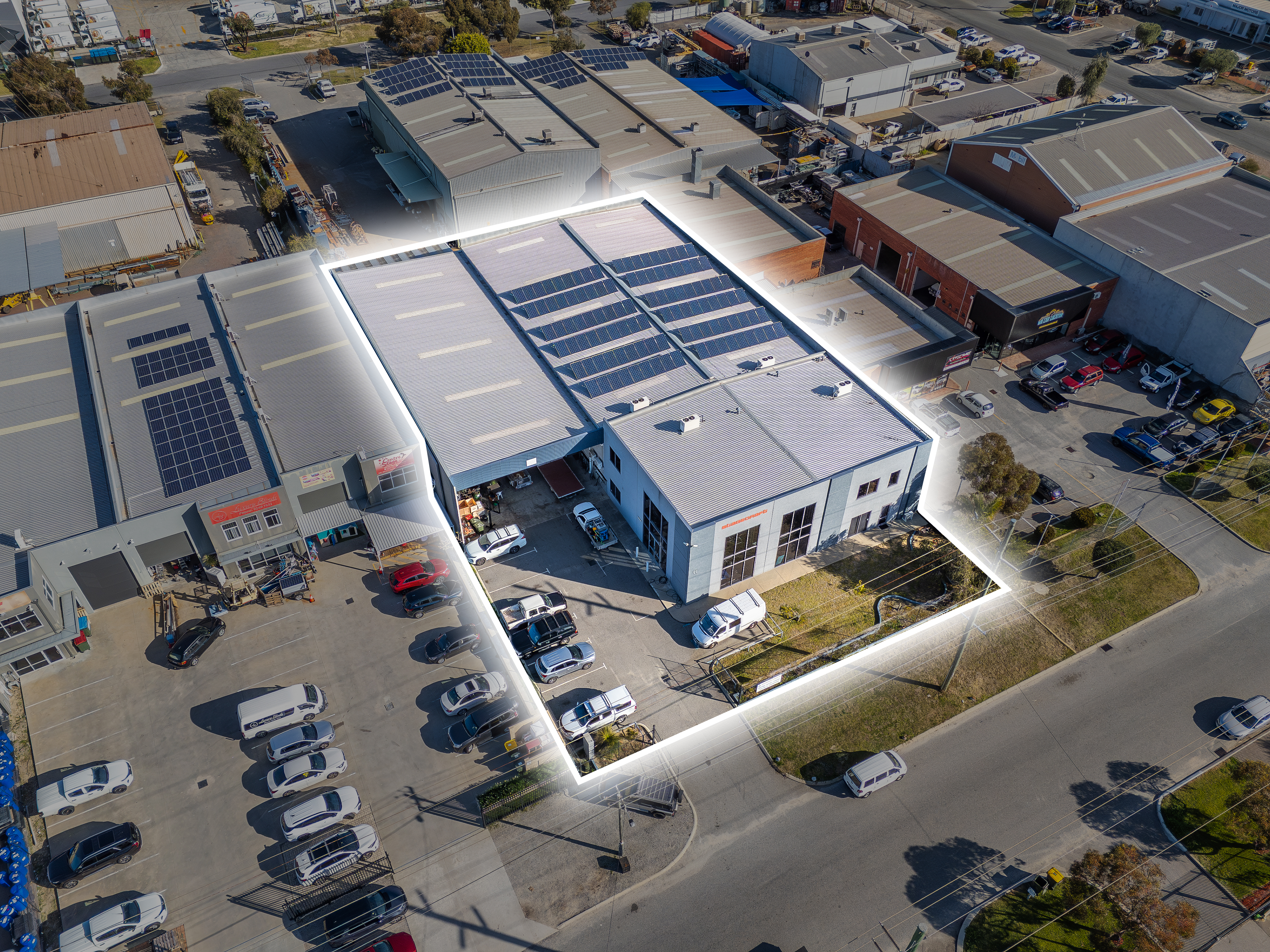 Situated on a substantial 2,170sqm* landholding, the improvements total 2,022sqm* and include a high-clearance warehouse comprising of 1,032sqm*, and 6.2–6.8m truss height.