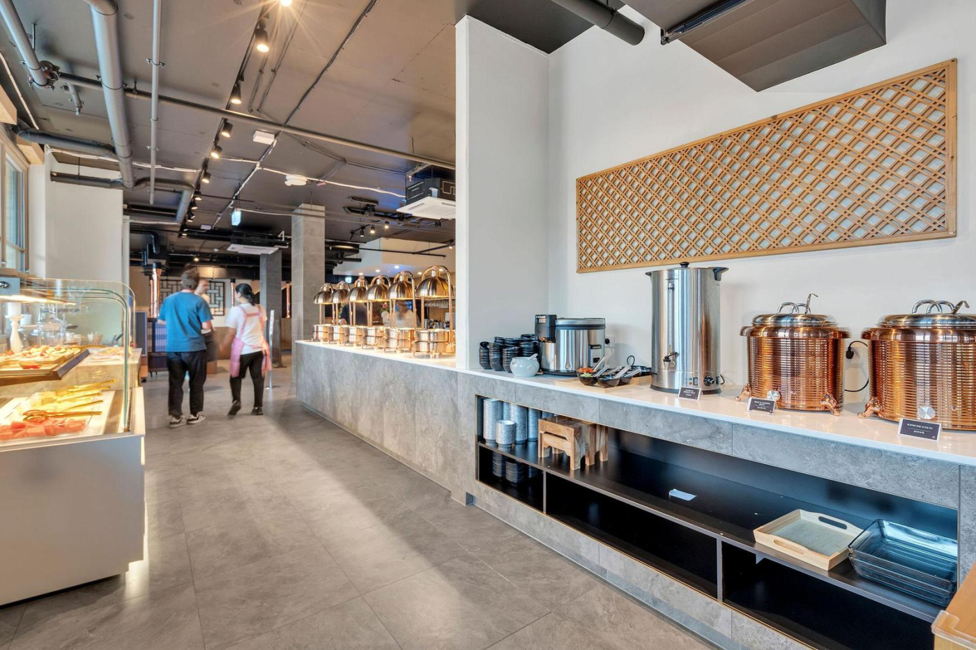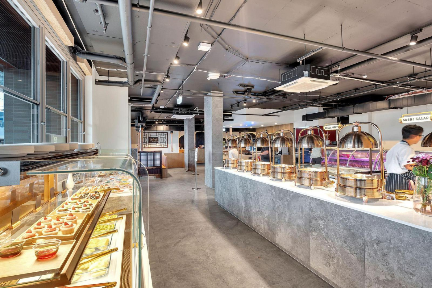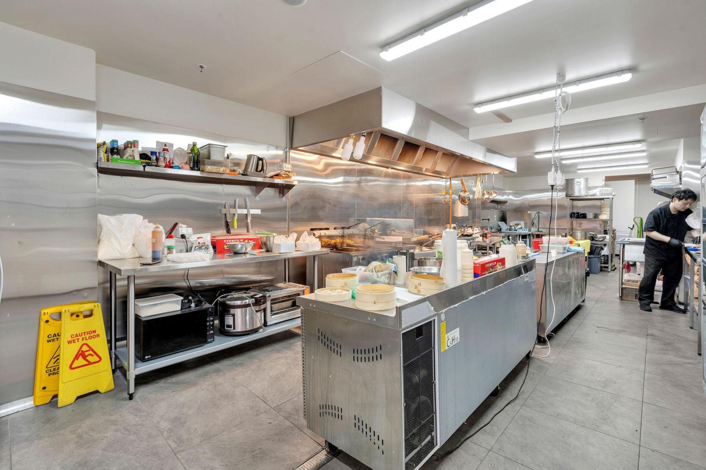 • Prominent building featuring a large-scale hospitality venue with multiple dining areas, a bar, and a fully equipped commercial kitchen.