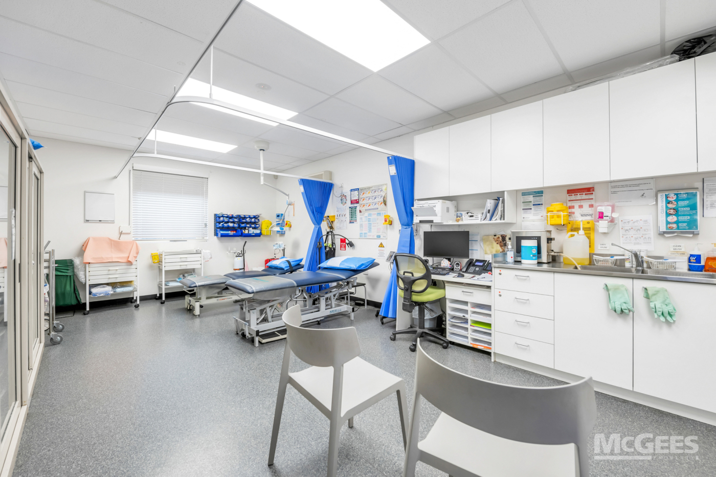 - 12 consulting rooms, CDM & treatment room, pathology, reception, admin, office, gym and kitchen