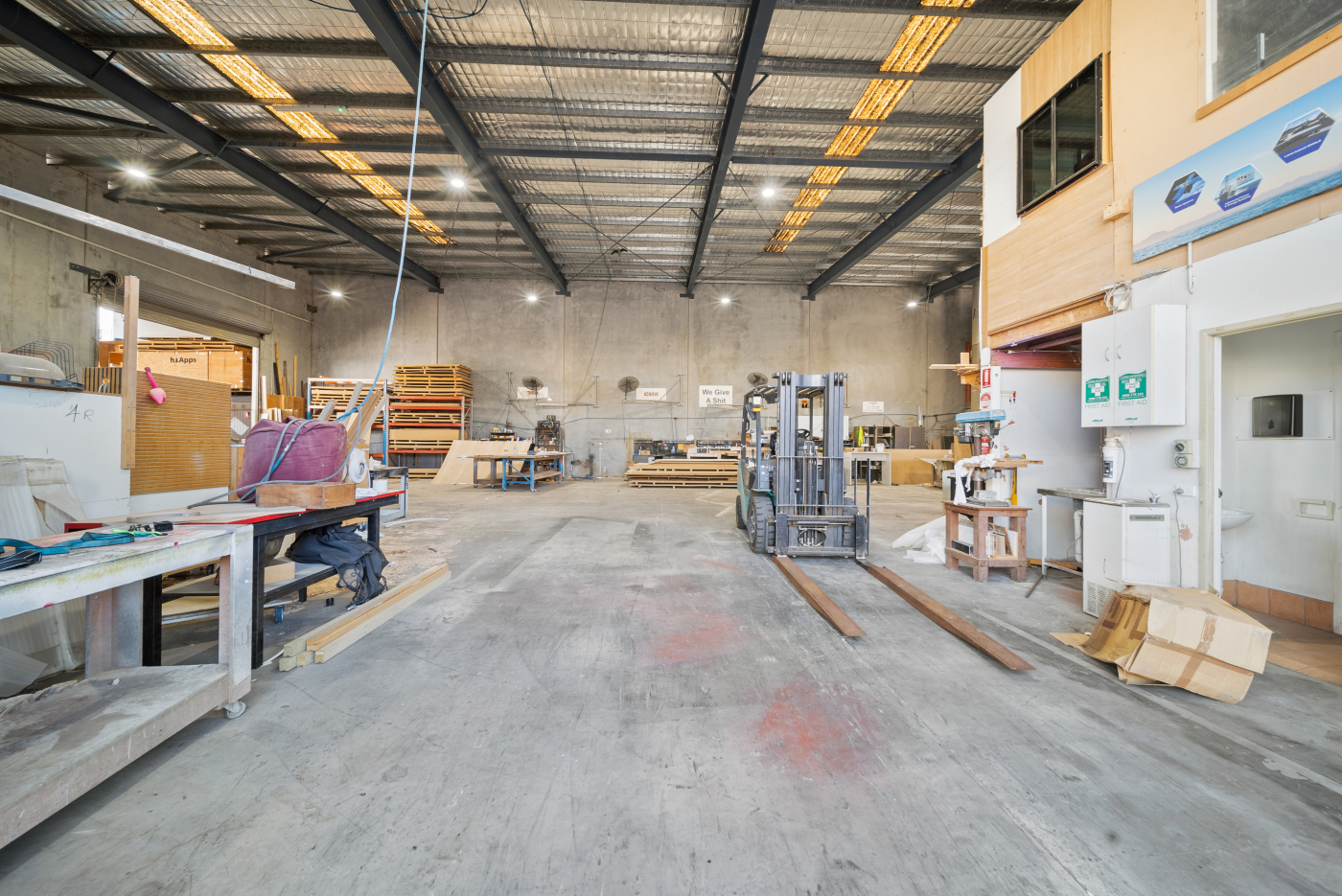• Three-phase power outlets throughout the entire ground floor, catering to heavy industrial use