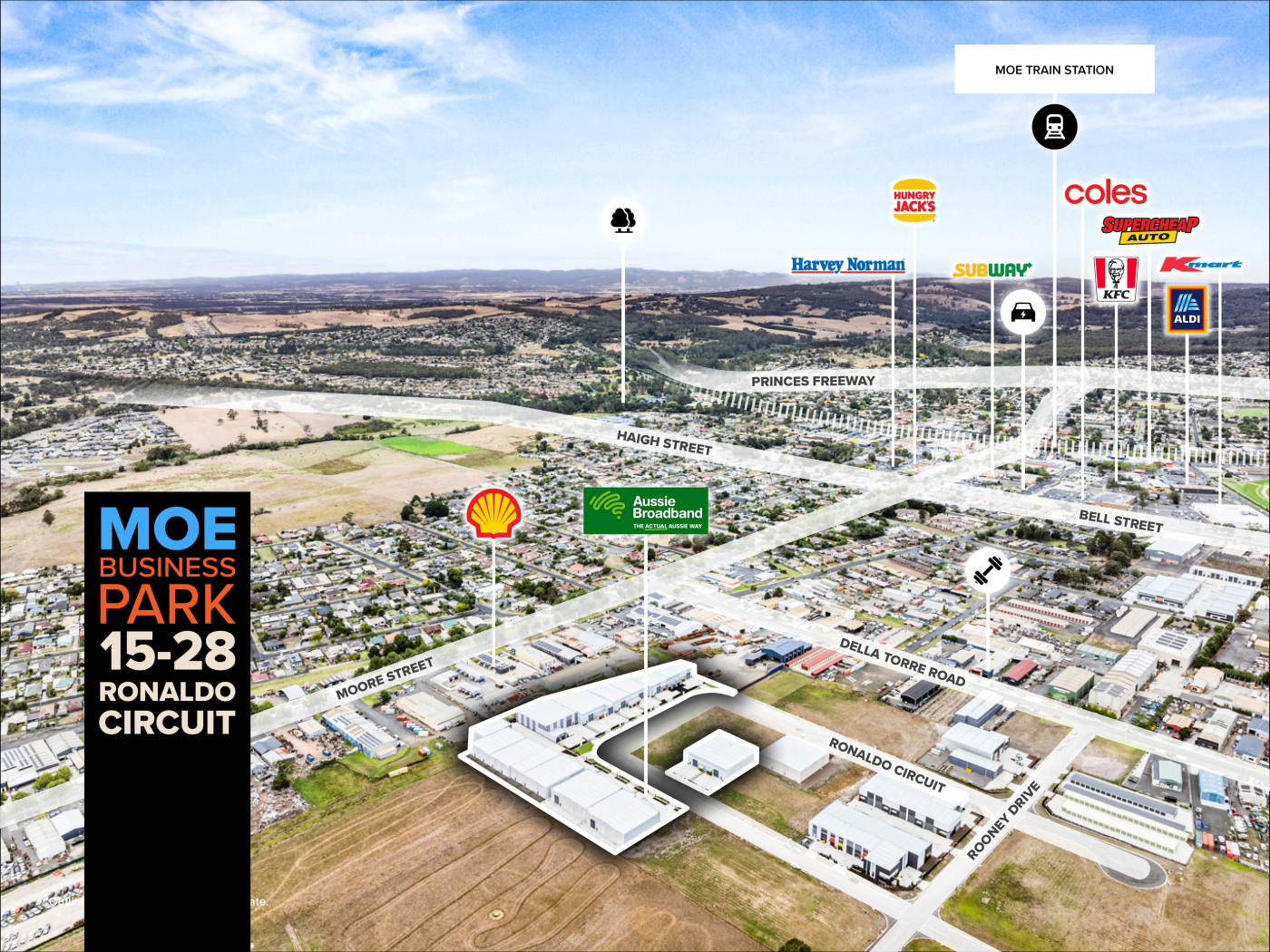Cameron and Stockdale & Leggo are pleased to offer for sale or lease, 18 brand new warehouses in Moe’s fastest-growing industrial sector. These properties are built by a quality builder and the finishing touches are second to none. Construction complete, be one of the first to secure one of these warehouses.