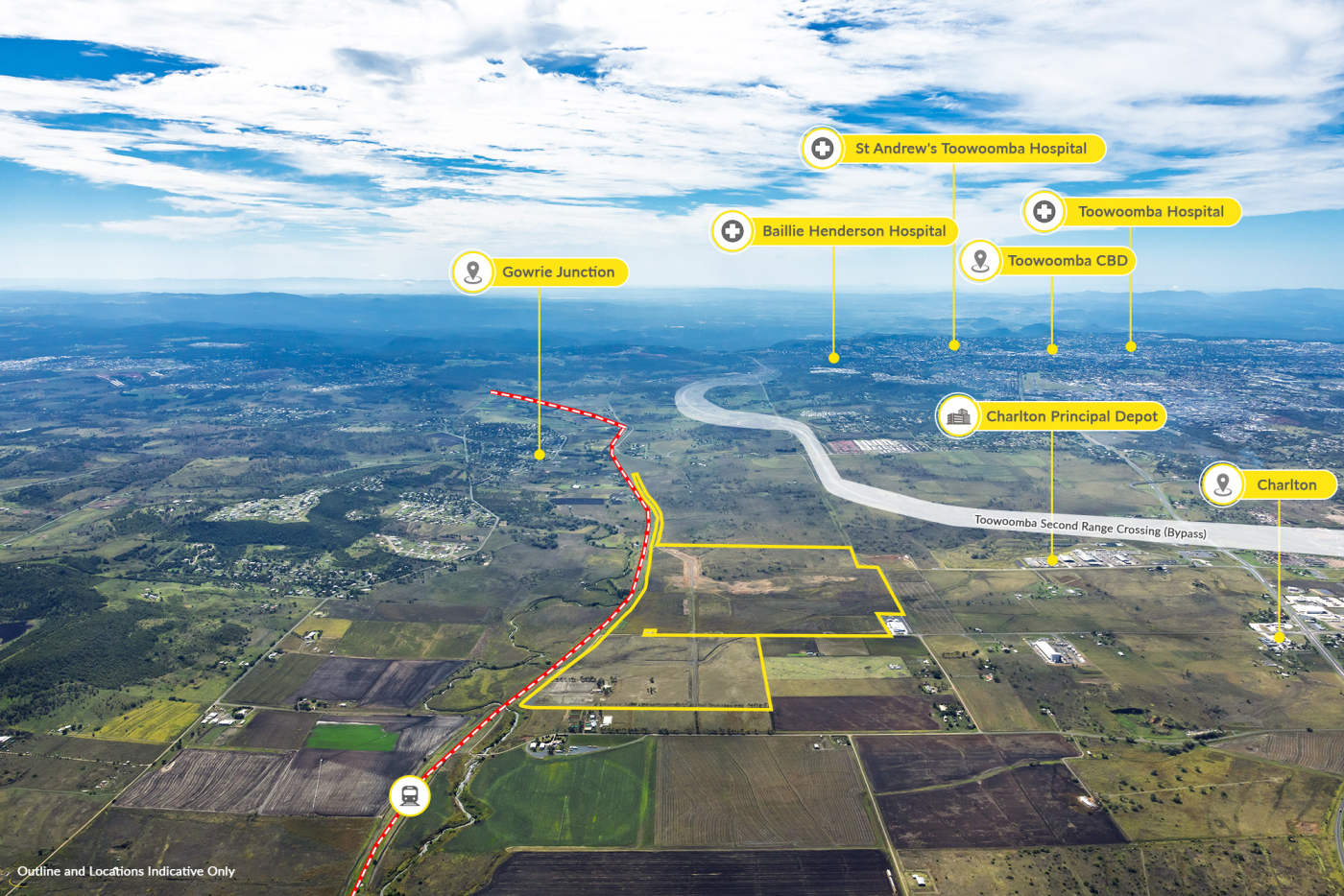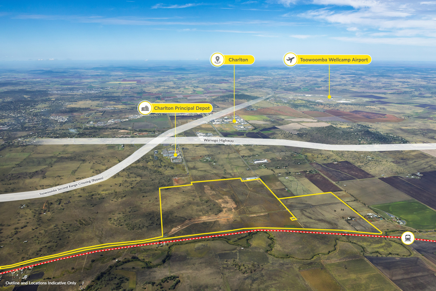 • Strategically located adjoining the rail line and with straightforward road access to Toowoomba Second Range Crossing (Bypass), Warrego Highway and Gore Highway. The New England Highway and Toowoomba Wellcamp Airport are also in close proximity