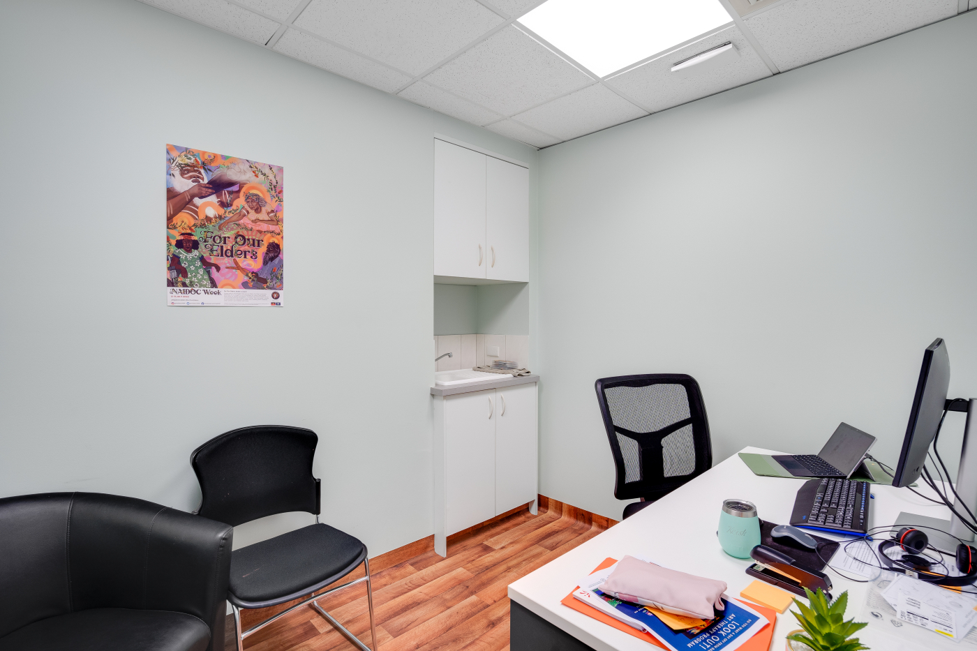 - Versatile 203 sqm* two-level office with multiple office/consulting rooms and quality amenities