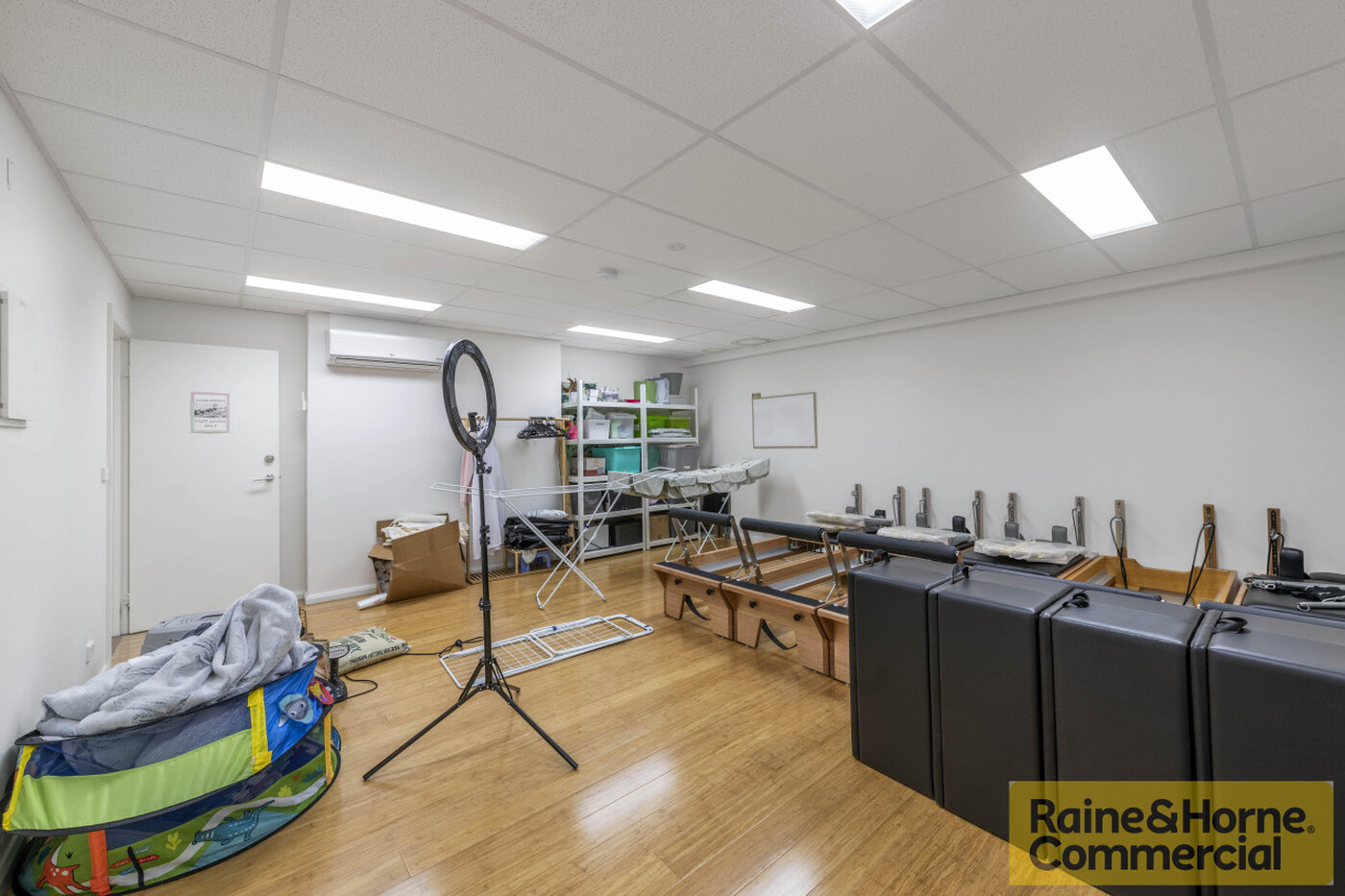 The property is an elevated strata-titled 2-level unit totalling 504sqm (258sqm ground floor & 246sqm upper floor) with frontage to Flemington Road and benefits from 7 allocated on-site car parks, plus plenty of customer parking to the front. Internally, the space presents extremely well with 5 generously sized open plan studios, one office, 2 toilets (one with shower), storeroom and kitchen, with hard wood flooring and great natural light through multiple large windows. Each room is separately air conditioned with a mix of ducted and wall mounted reverse cycle units.