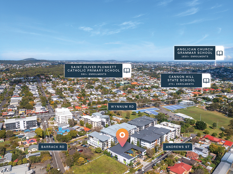 + Prominently positioned within an important schooling precinct, situated within immediate proximity of Cannon Hill State School (360m*), Saint Oliver Plunkett School (510m*) & an additional five (5) schools within a 2km* radius, which combine to service 7,635* full time students