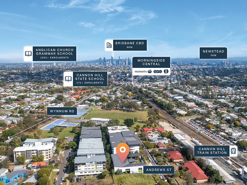+ Centrally located in a prized retail precinct, with six major shopping centres within a 3km* radius including Homemaker City Cannon Hill & Morningside Central Shopping Centre, featuring national retailers Bunnings, Kmart, ALDI, Coles, Woolworths & Guzman Y Gomez