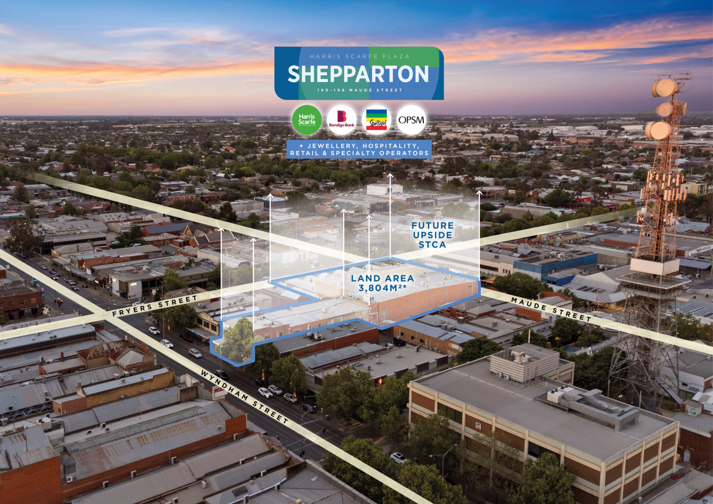 Scarfe Plaza presents as one of Shepparton’s premier CBD landholdings, a substantial income producing retail centre anchored by national tenants and positioned across three (3) major street frontages.
