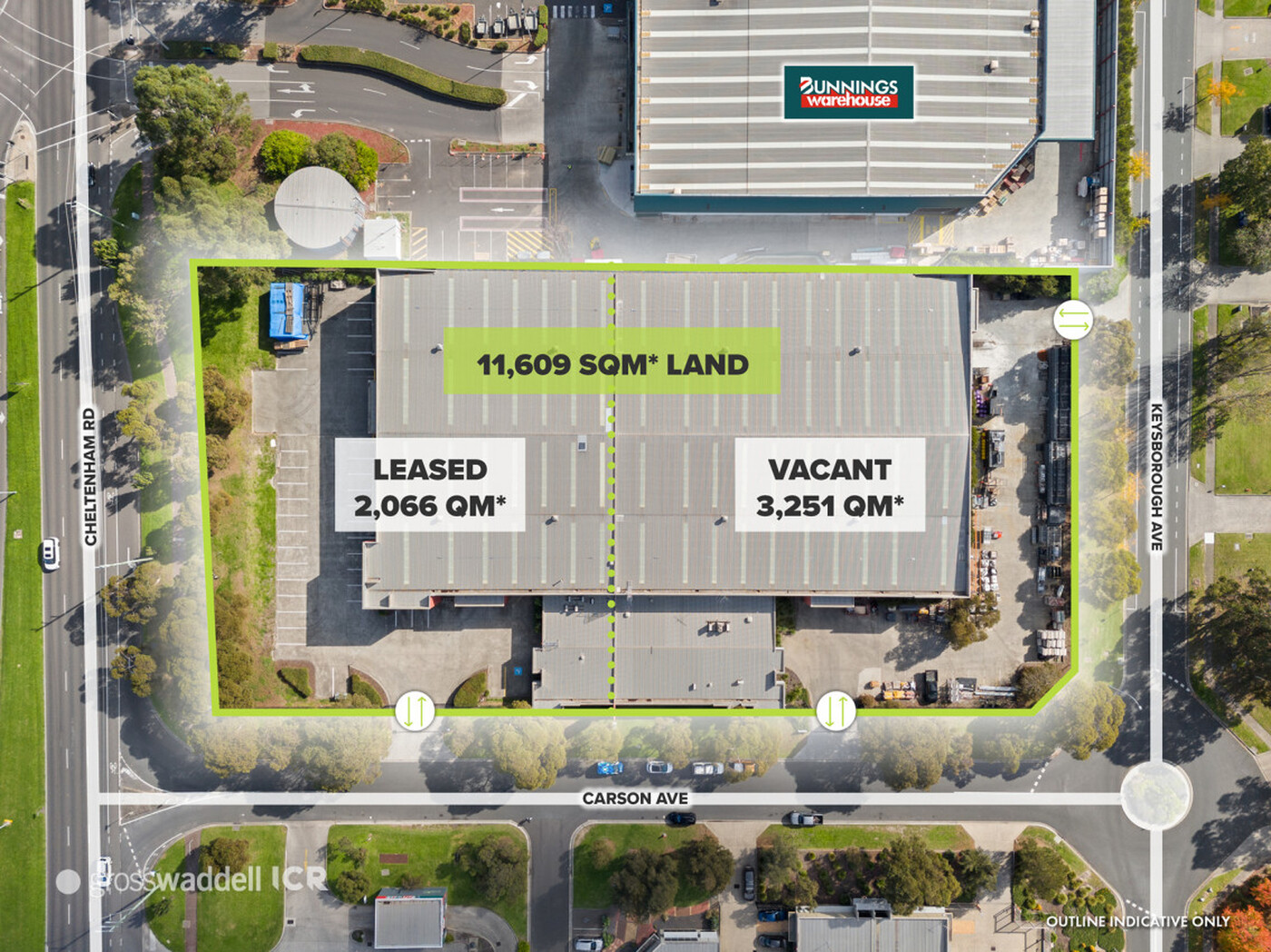• Two (2) high profile warehouse/ showrooms immediately adjoining Bunnings and surrounded by Officeworks, Supercheap Auto and directly across from HomeCo Keysborough