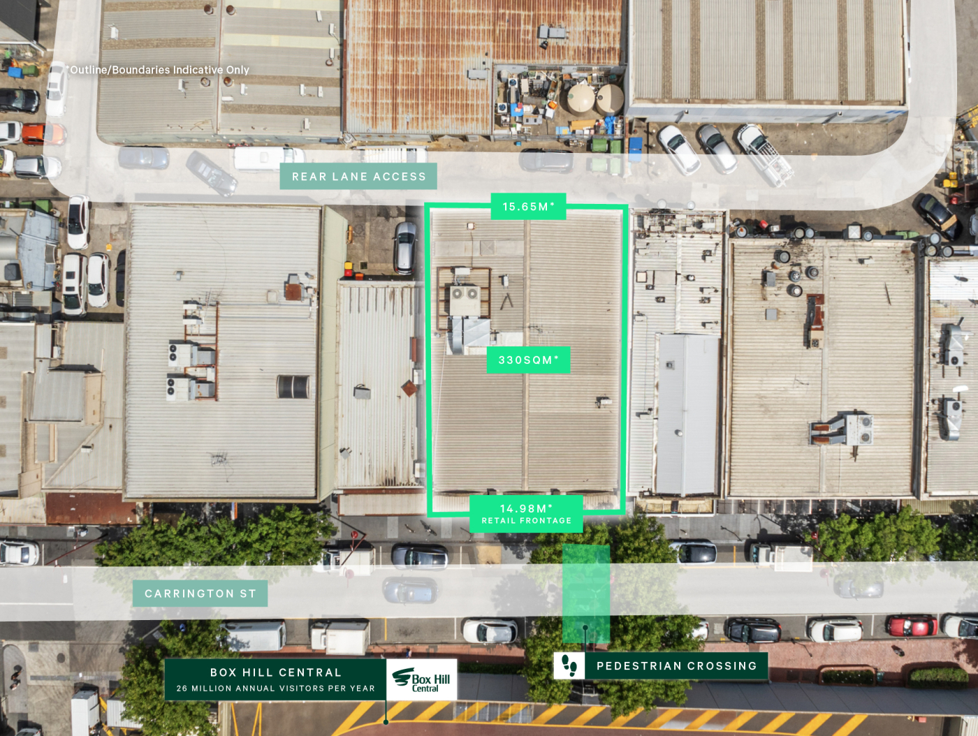 + Prime Carrington Road frontage within immediate proximity to Box Hill Central, Box Hill Station, major retail, medical, dining and education amenity, benefitting from consistently high pedestrian volumes and strong daily activation
