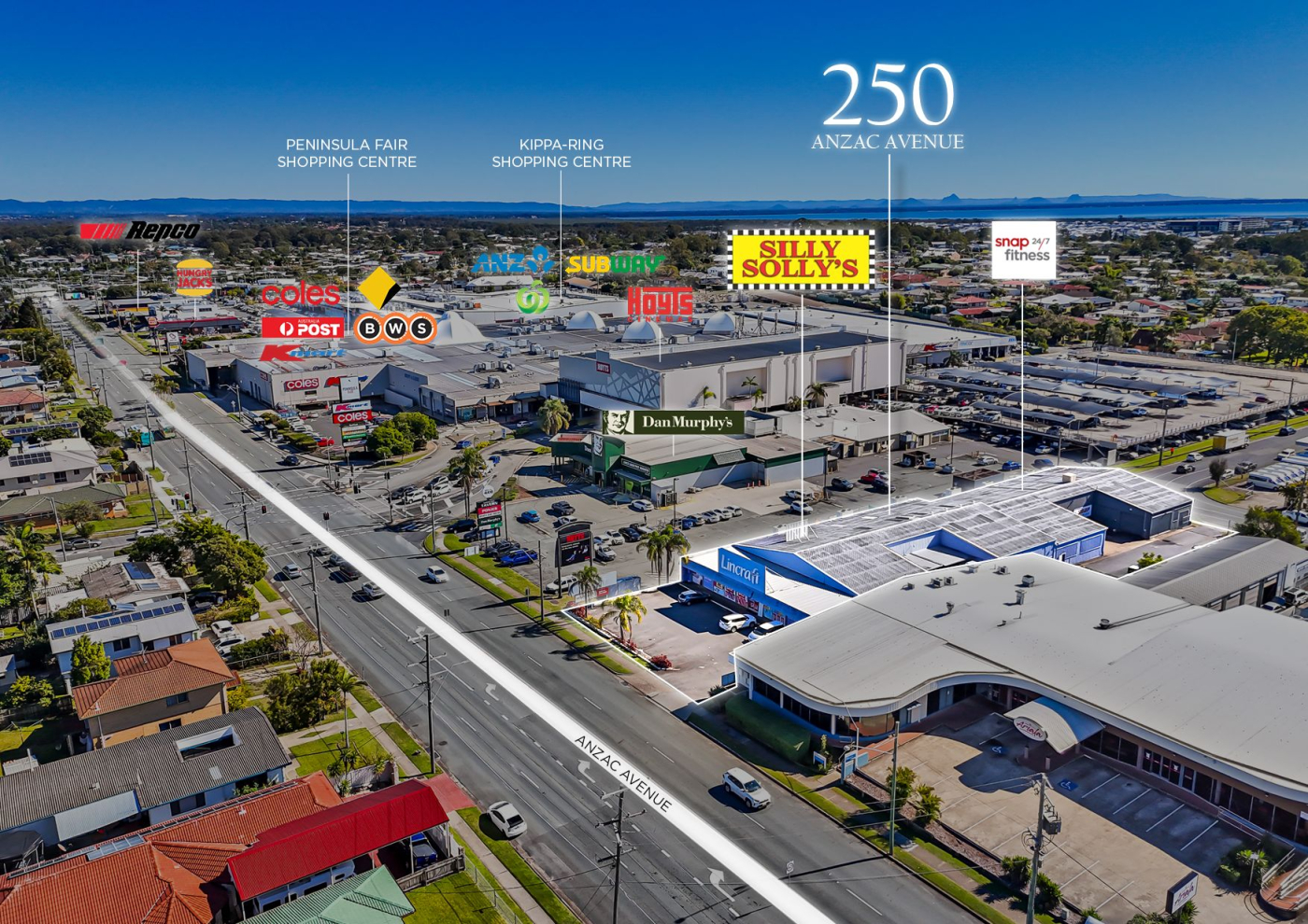 • Strategically located neighbouring Kippa-Ring and Peninsula Fair Shopping Centres home to major multi-national tenants such as Woolworths, Coles, Kmart, Hoyts Cinema, Dan Murphys, which attracts over 6,000,000 visitors per annum.