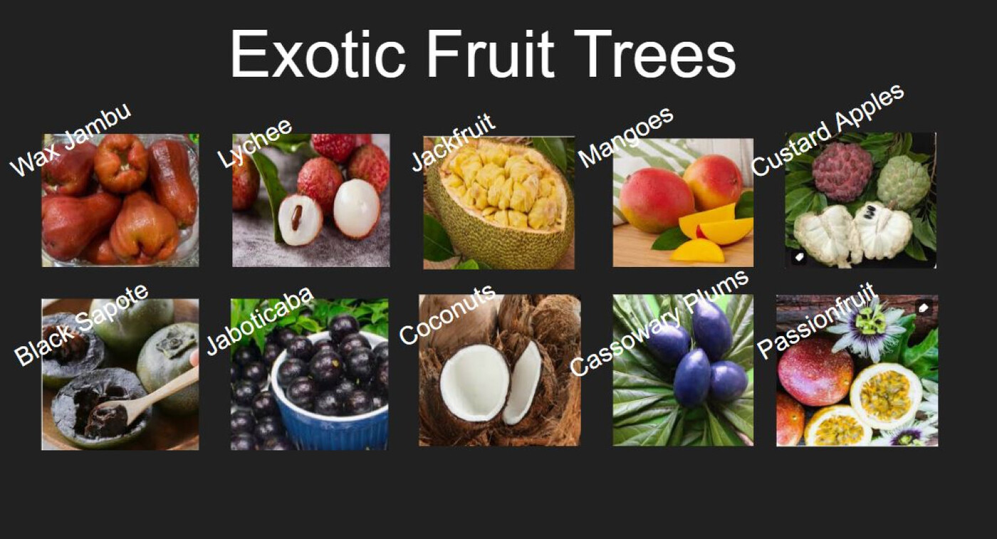 This is truly a Garden of Eden - there are many fruit trees on the property: Lychee, Jackfruit, Wax Jambu, Mangoes, Black Sapote, Jaboticaba, Coconuts, Cassowary Plus, Custard Apples and an arbour of Passion Fruit.
