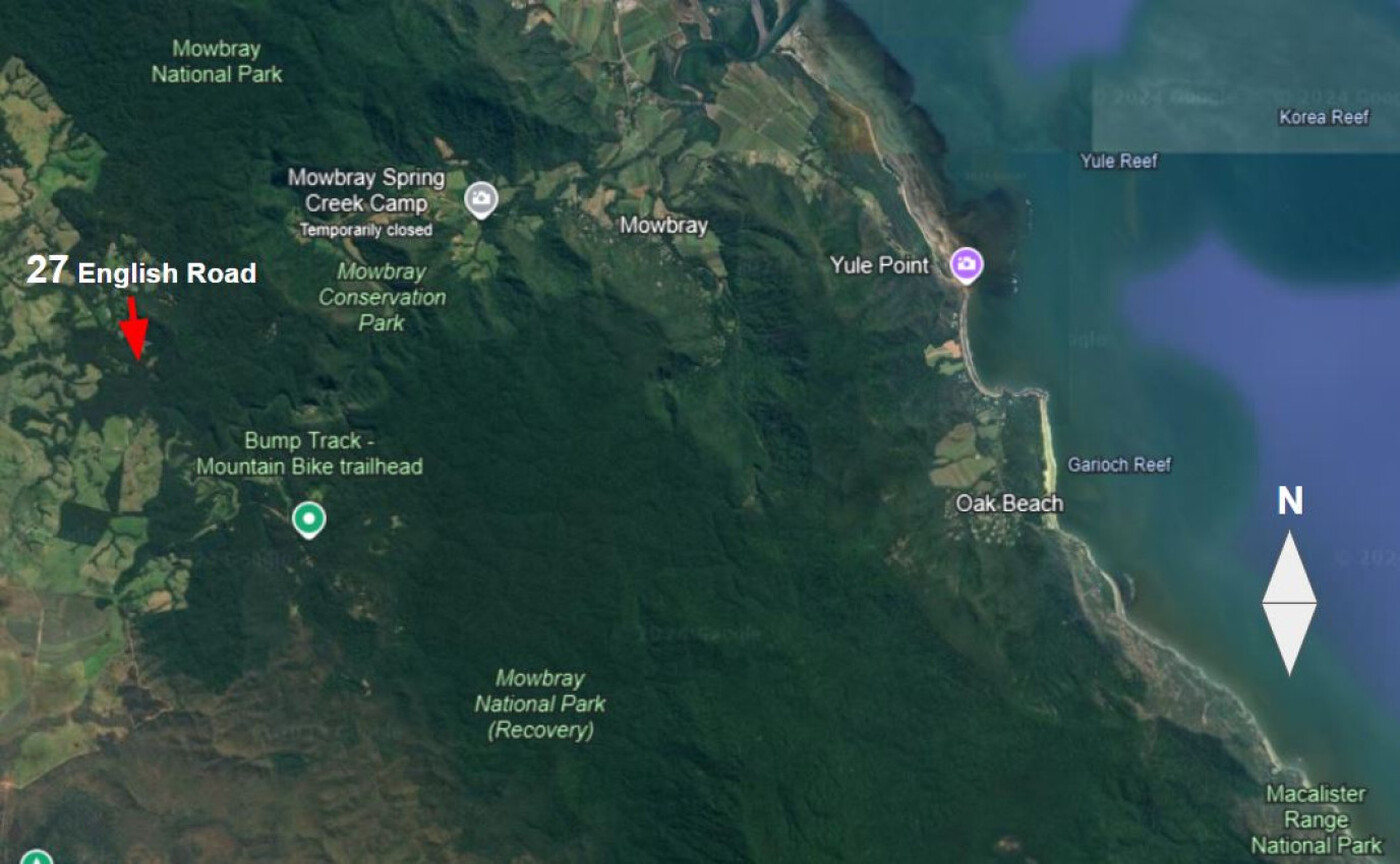 The property also runs alongside Euluma Creek which offers visitors a chance to bathe in the pristine waters of a rainforest creek. Also with a cleared site for camping on its banks.