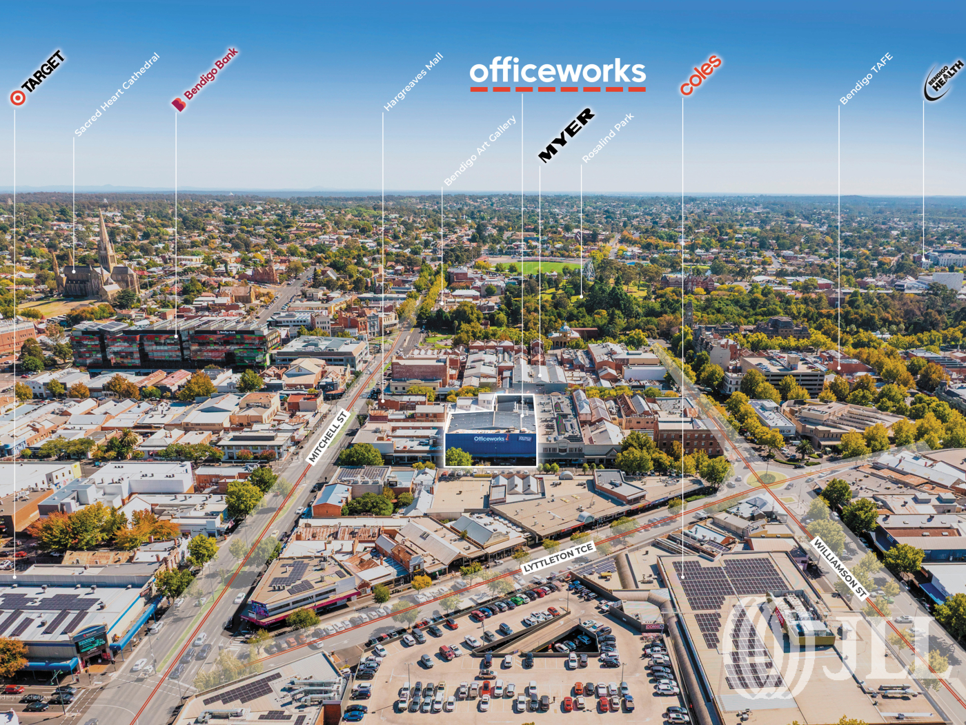 JLL Retail Investments has the exclusive privilege of offering for sale Officeworks Bendigo, an exceptional opportunity to acquire a 100% freehold investment in the heart of Bendigo’s CBD with secure NET lease to Australia’s leading office-supplies retailer, Officeworks Limited.
