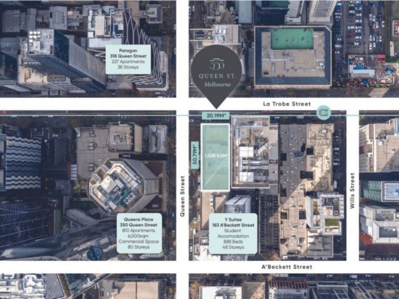 + Extensive dual street frontages to Queen and La Trobe Streets of 71 metres*
