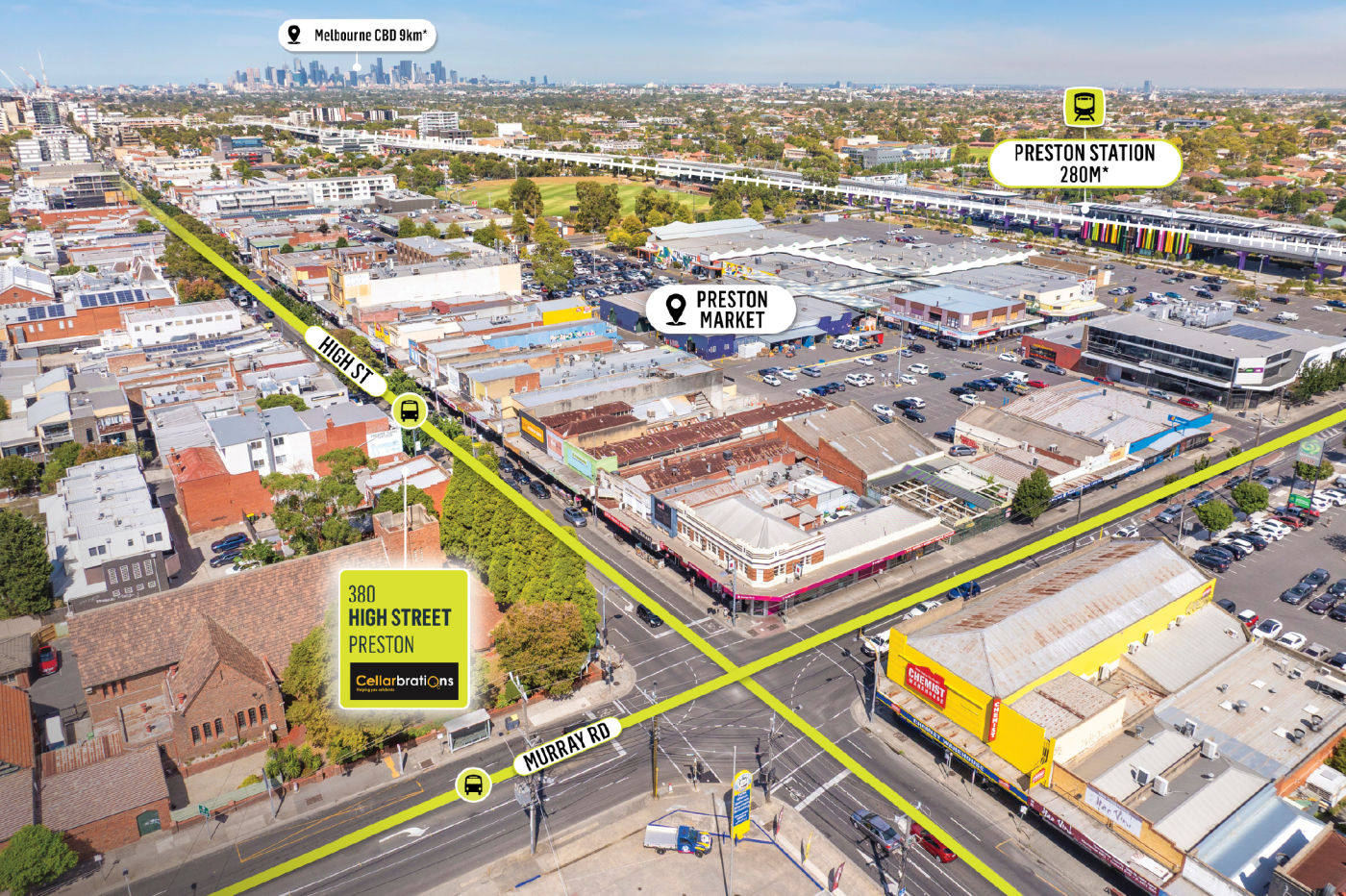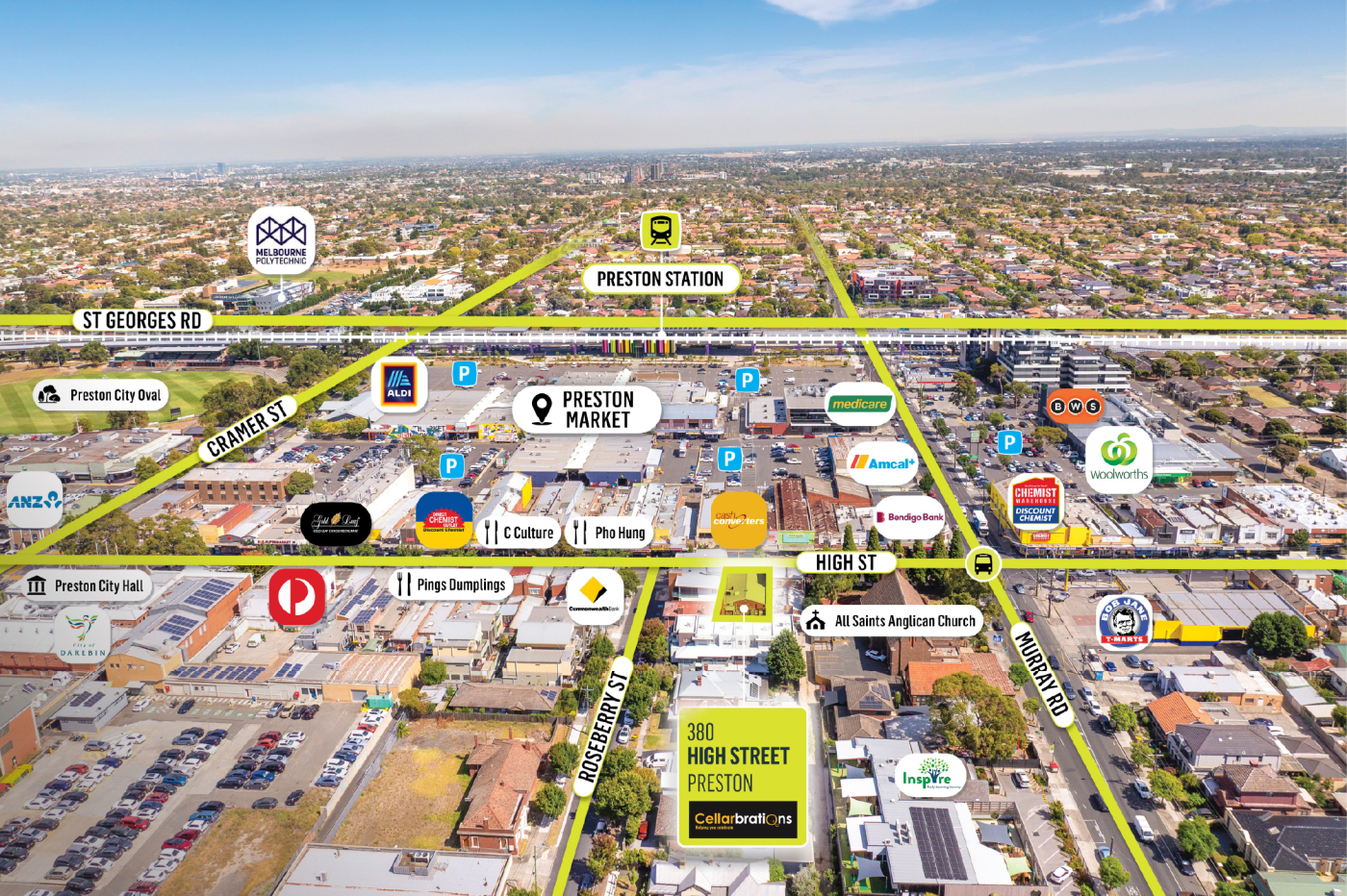 - Opposite the famous Preston Market and surrounded by a strong mix of national retailers including Woolworths, Aldi, Chemist Warehouse, CBA, ANZ along with popular eateries