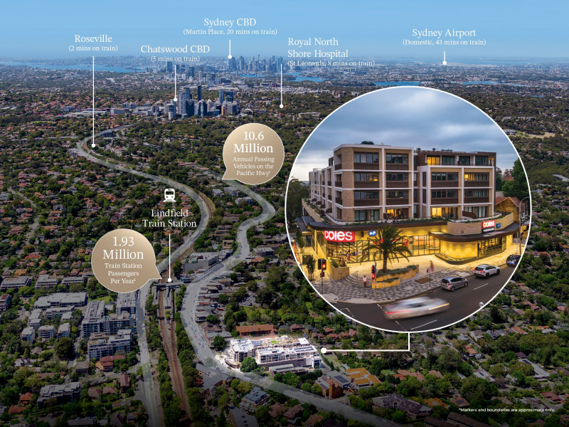 Strategically positioned beneath 59 luxury apartments on the Pacific Highway, Coles Lindfield provides a state-of-the-art supermarket offering with 248 basement car bays and proximity to Lindfield Train Station just 250 metres away. The prime location captures from 10.6 million annual passing vehicles while servicing a rapidly expanding trade area of 51,580 residents. 2