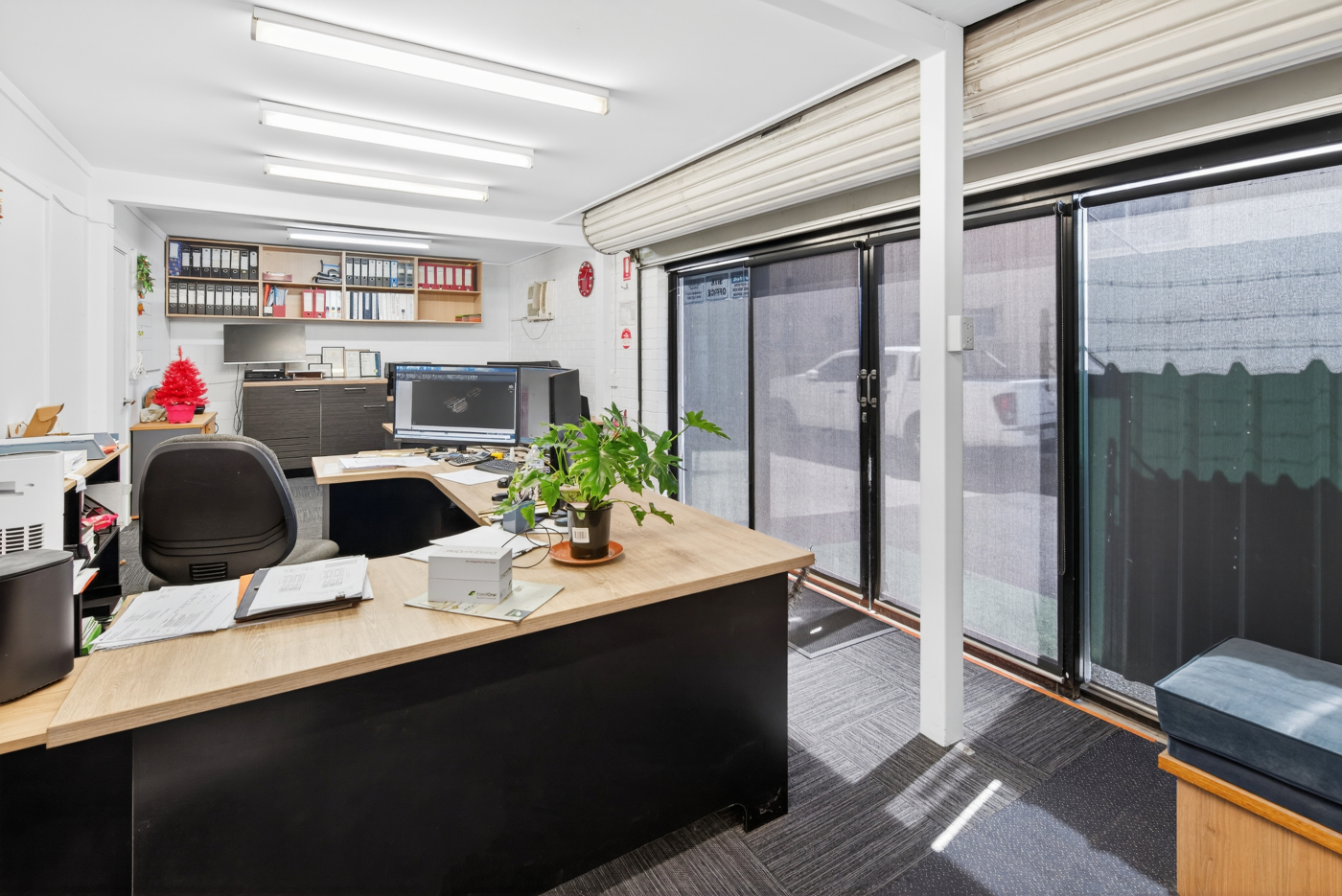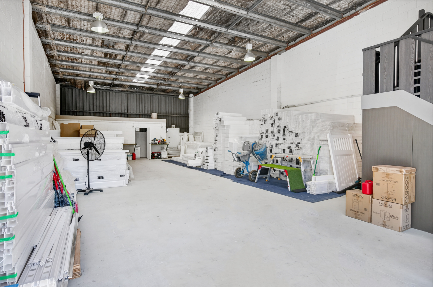 Comprising two separate industrial buildings configured across four (4) individual warehouse tenancies, the property provides a practical mix of high-clearance warehouse, workshop and air-conditioned office accommodation.