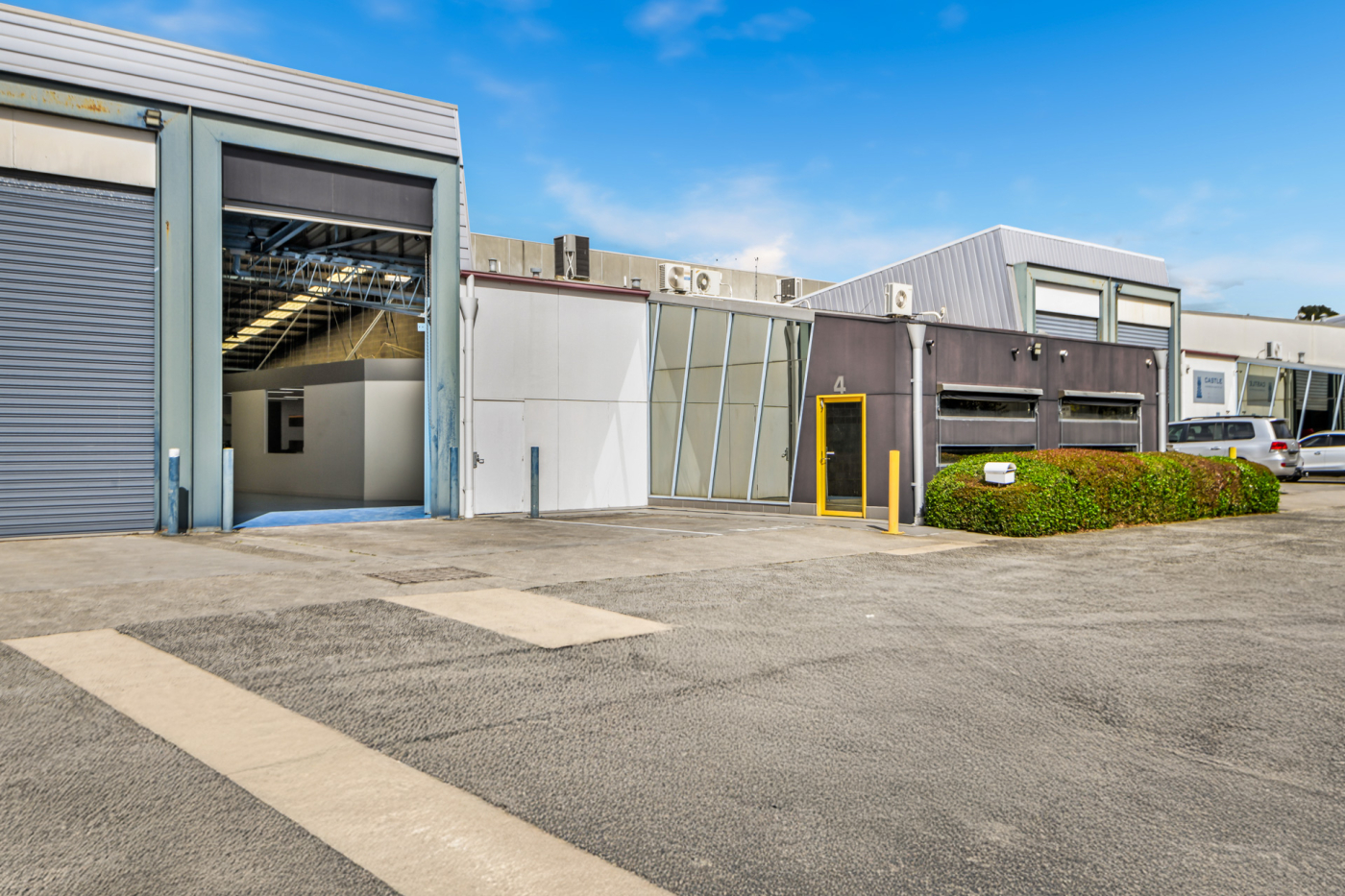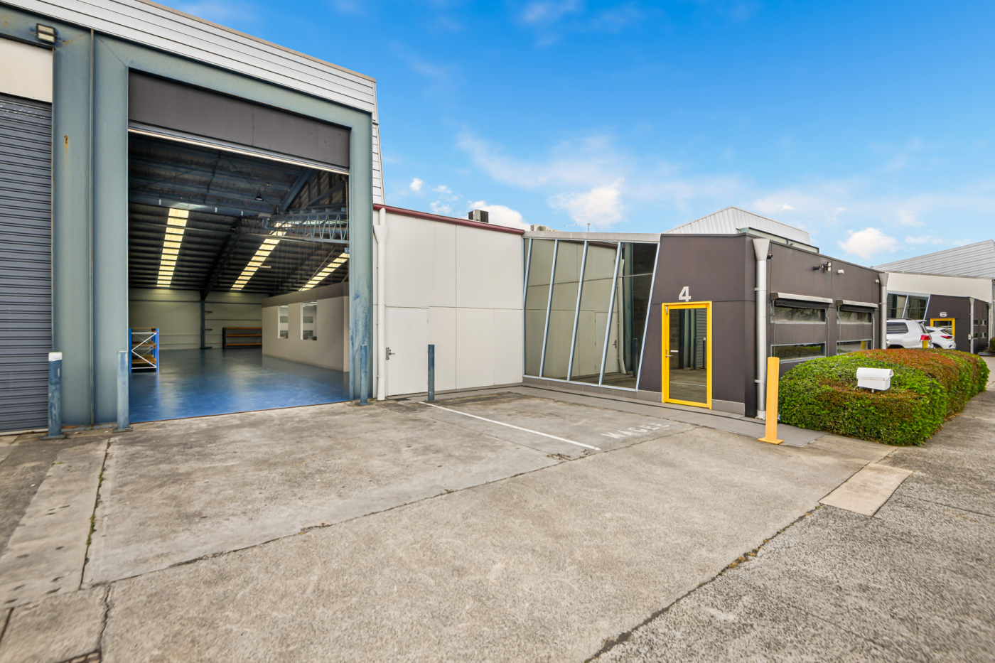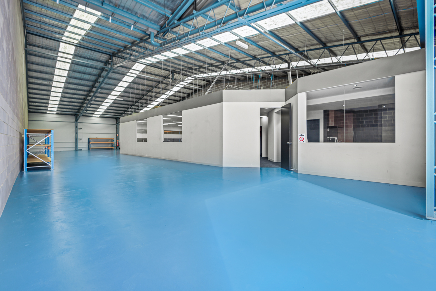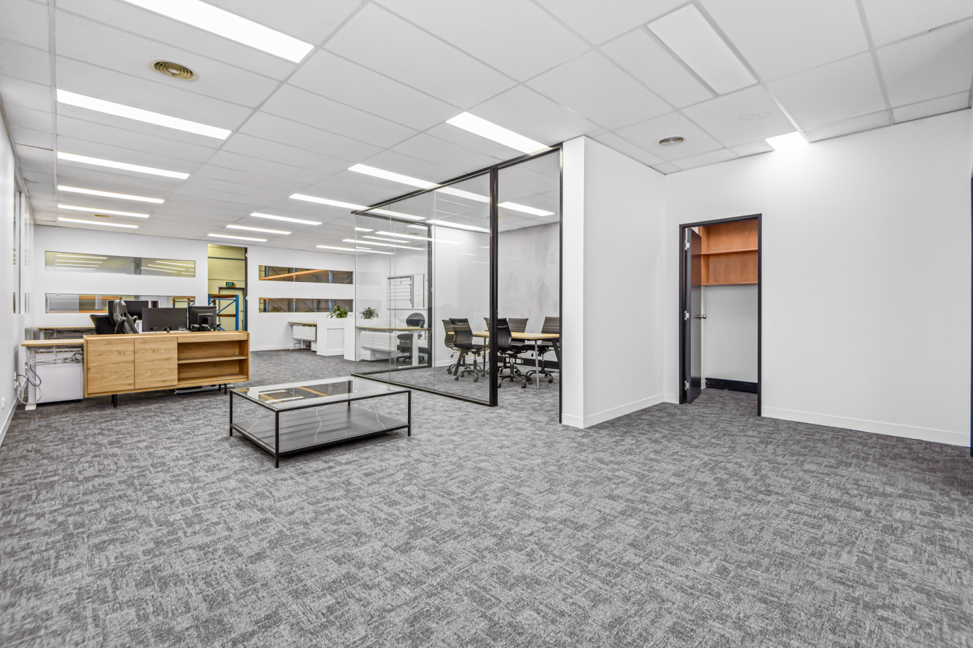 The facility features a corporate-grade office with a welcoming reception, open-plan workspace, and a modern, glass-partitioned meeting room. This professional front-of-house is seamlessly integrated with an expansive, high-clearance warehouse optimised for productivity with excellent natural light and a container-height roller door for superior logistical access.