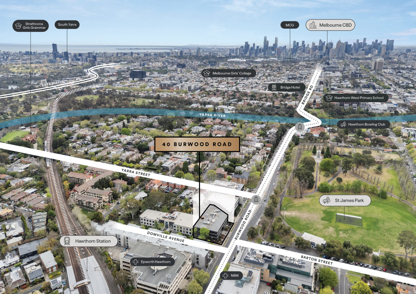 - Exceptional road and rail connectivity – 300m to Hawthorn station, 70m to tram route #75 and 2km to Monash Freeway
