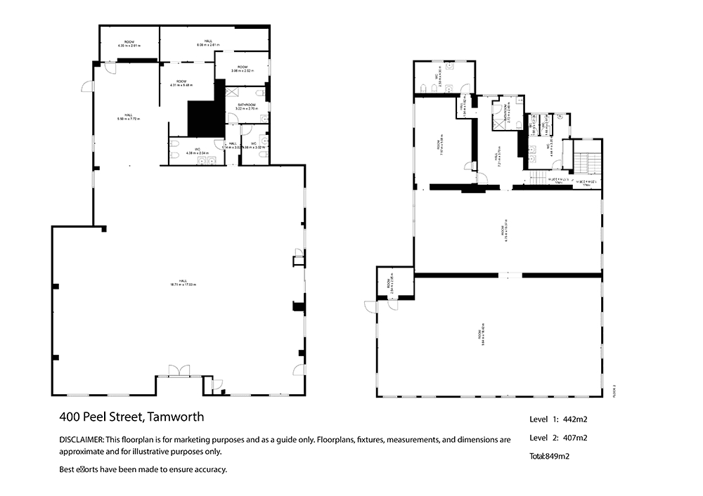 • 849 m2 of internal floor space across two levels (approx.)
