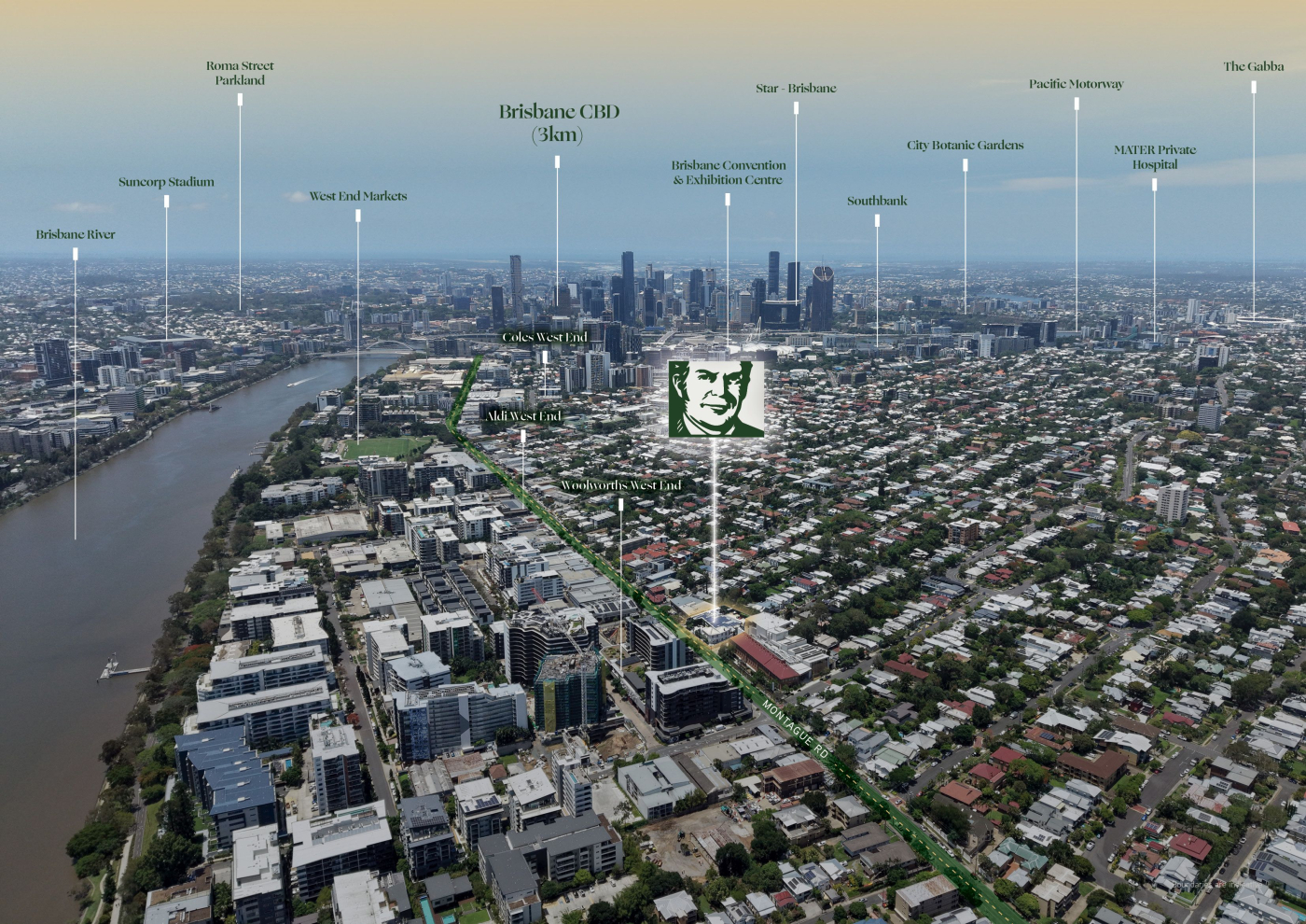 Occupying a commanding 2,414sqm* corner landholding just 3 kilometres from the Brisbane CBD, the property benefits from exceptional exposure along Montague Road and Raven Street, and immediate proximity to major lifestyle, transport and employment nodes including South Bank, South Brisbane Station and Star Brisbane.