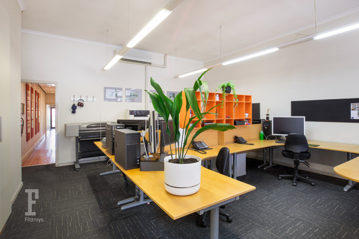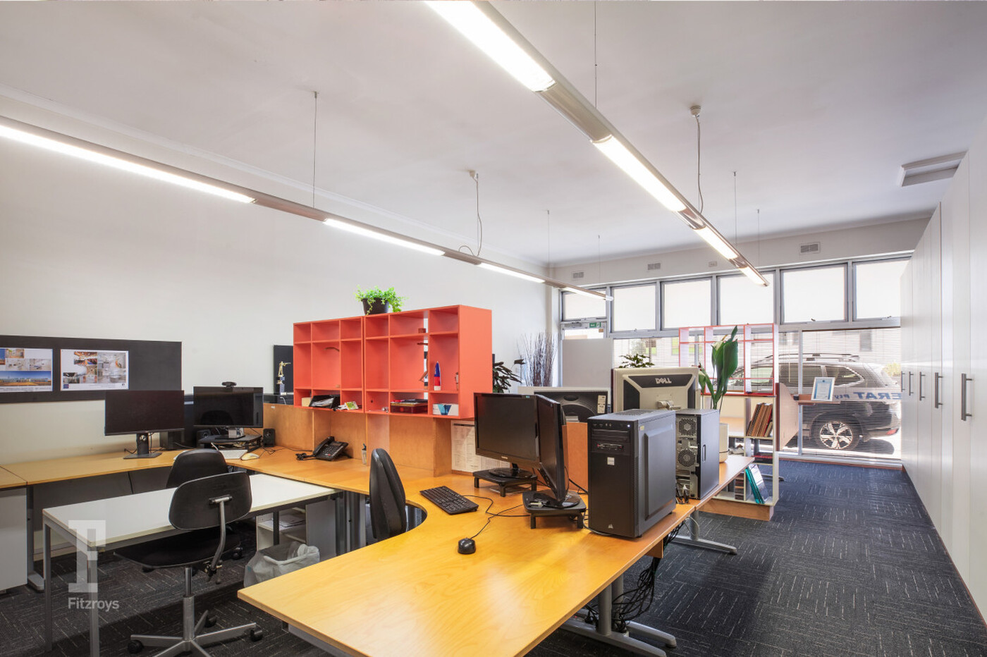 - Well-presented and configured single storey building comprising open plan shop front with heating and cooling, offices, kitchen, bathroom, storage, and modern finishes throughout