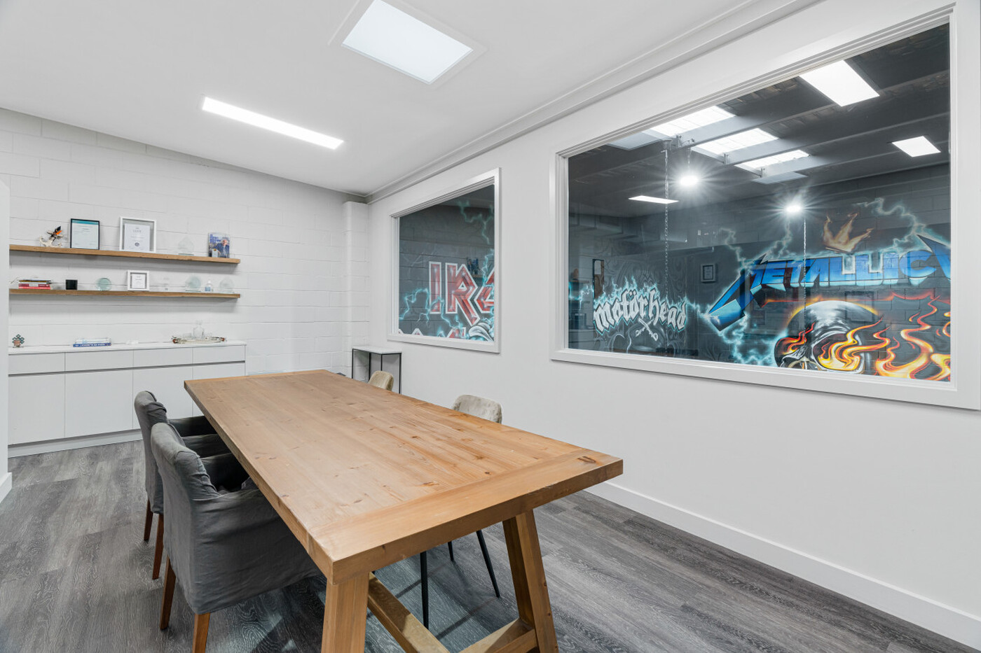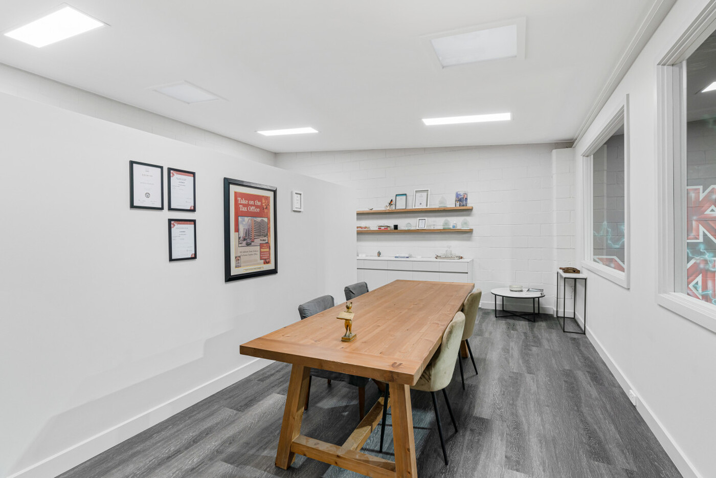 - A Grade Level 1 office with corporate-industrial-style fit-out.