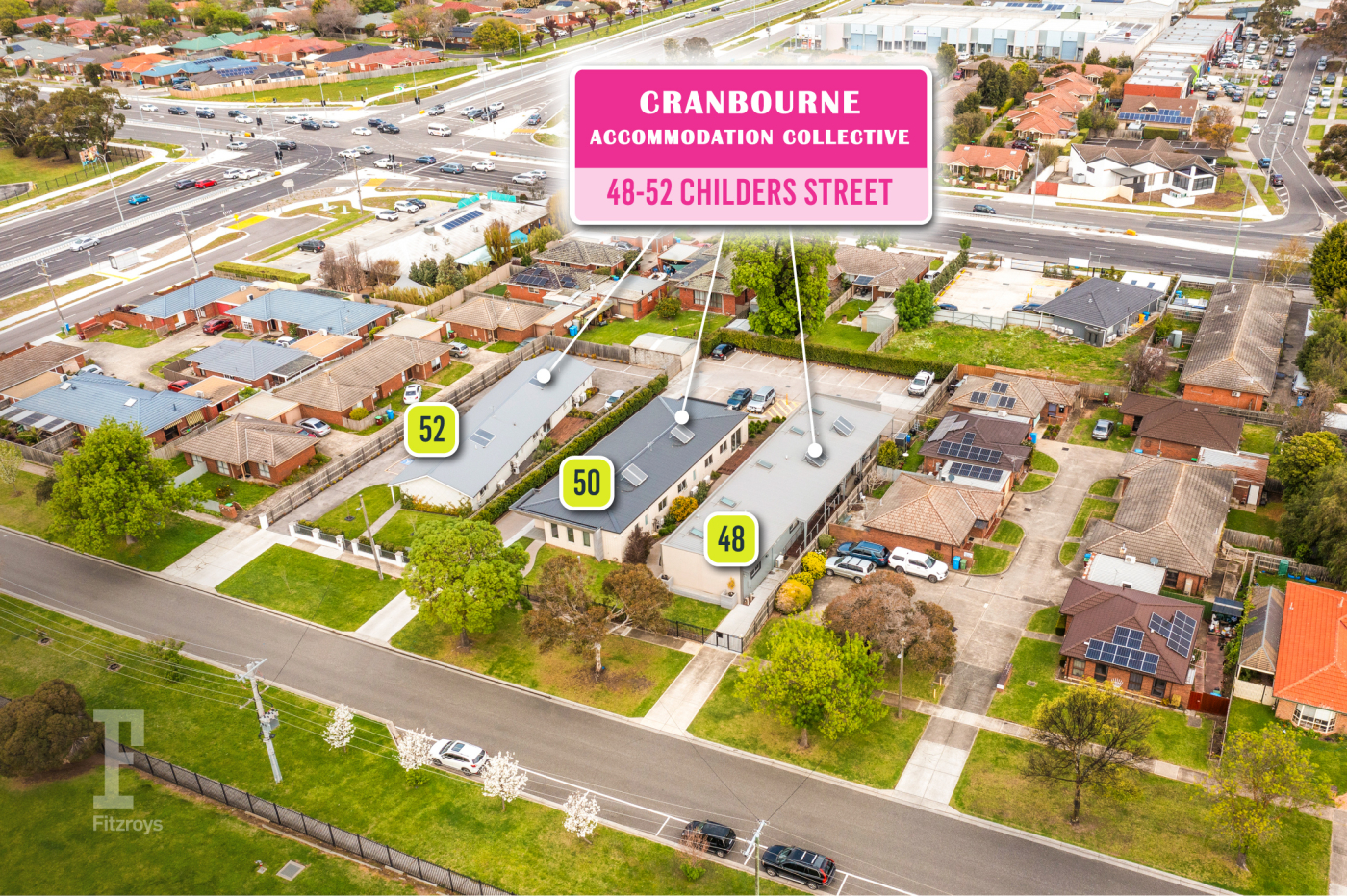 Fitzroys is delighted to present a truly unique and versatile accommodation facility at 48, 50 & 52 Childers Street, Cranbourne for sale.