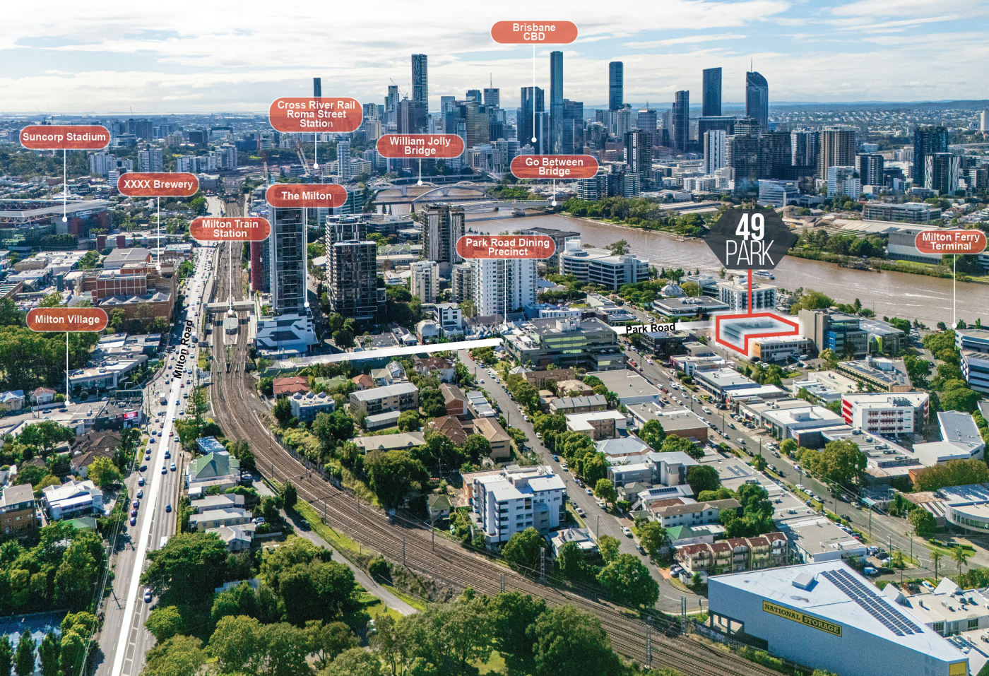 Milton is widely regarded as Brisbane’s premier near-city office precinct, with significant arterial road and public transport connectivity nearby including the Inner City Bypass, Milton Citycat ferry terminal, Railway station and bikeways. The renowned Park Road dining strip provides a high level of dining amenity, with the broader Milton precinct entering a phase of significant densification as surrounding office assets have recently been approved for redevelopment ranging in heights between 20 – 37 storeys.
