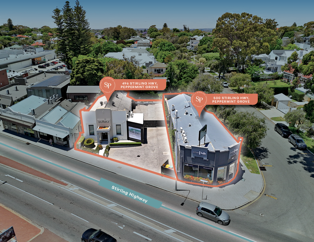 Sterling Property is pleased to exclusively present a rare commercial opportunity in one of Perth’s most prestigious western suburbs locations, two prominent buildings at 496 & 500 Stirling Highway, Peppermint Grove, available together or individually.