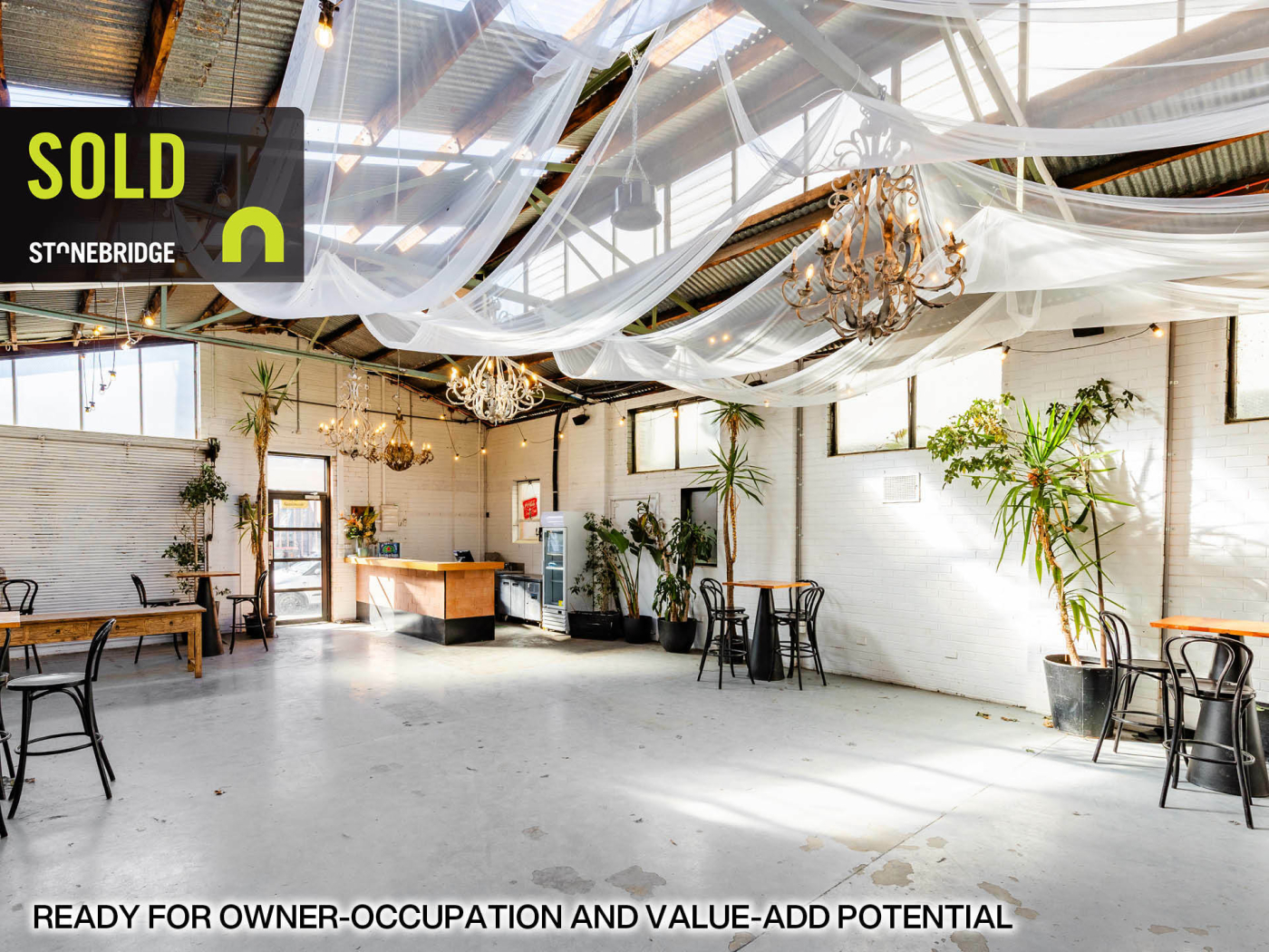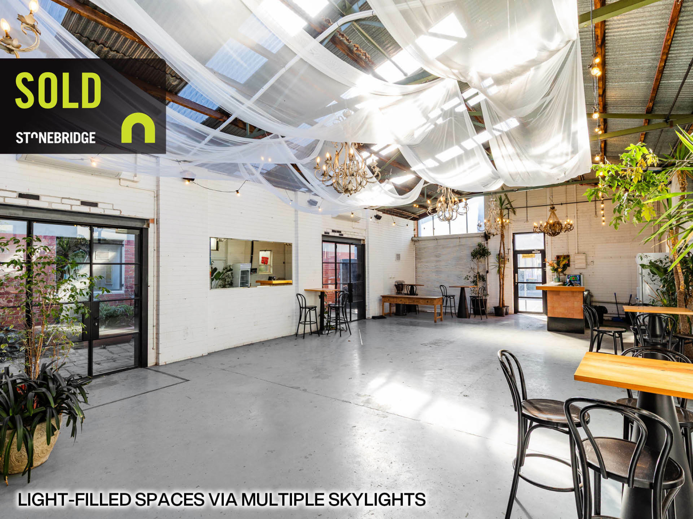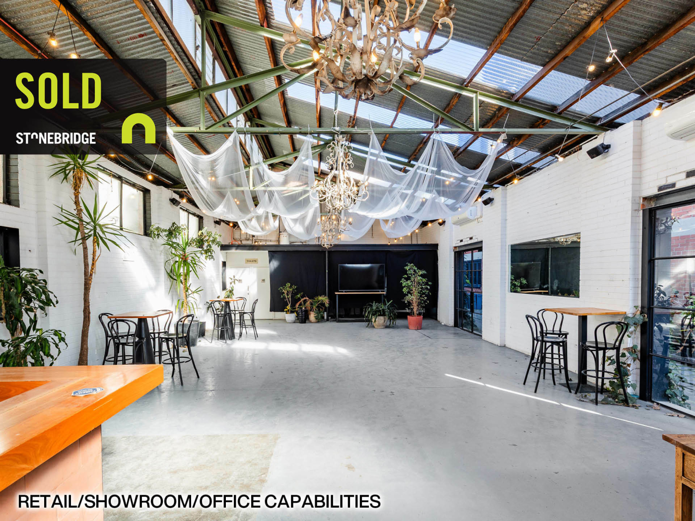 - Previously utilised as a function space for corporate events. Ideal for hospitality uses, café or coffee roaster