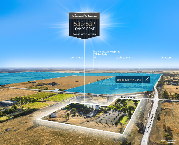 - Prominent frontage of 299 meters* to Melton Highway and 68 meters* to Leakes Road