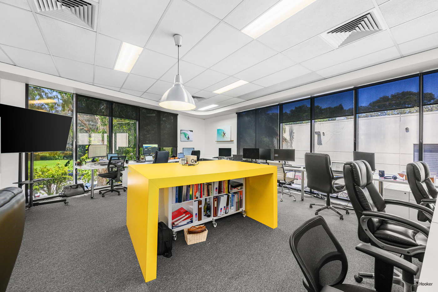 - Executive corner office with floor-to-ceiling glass, flooding the space with natural light
