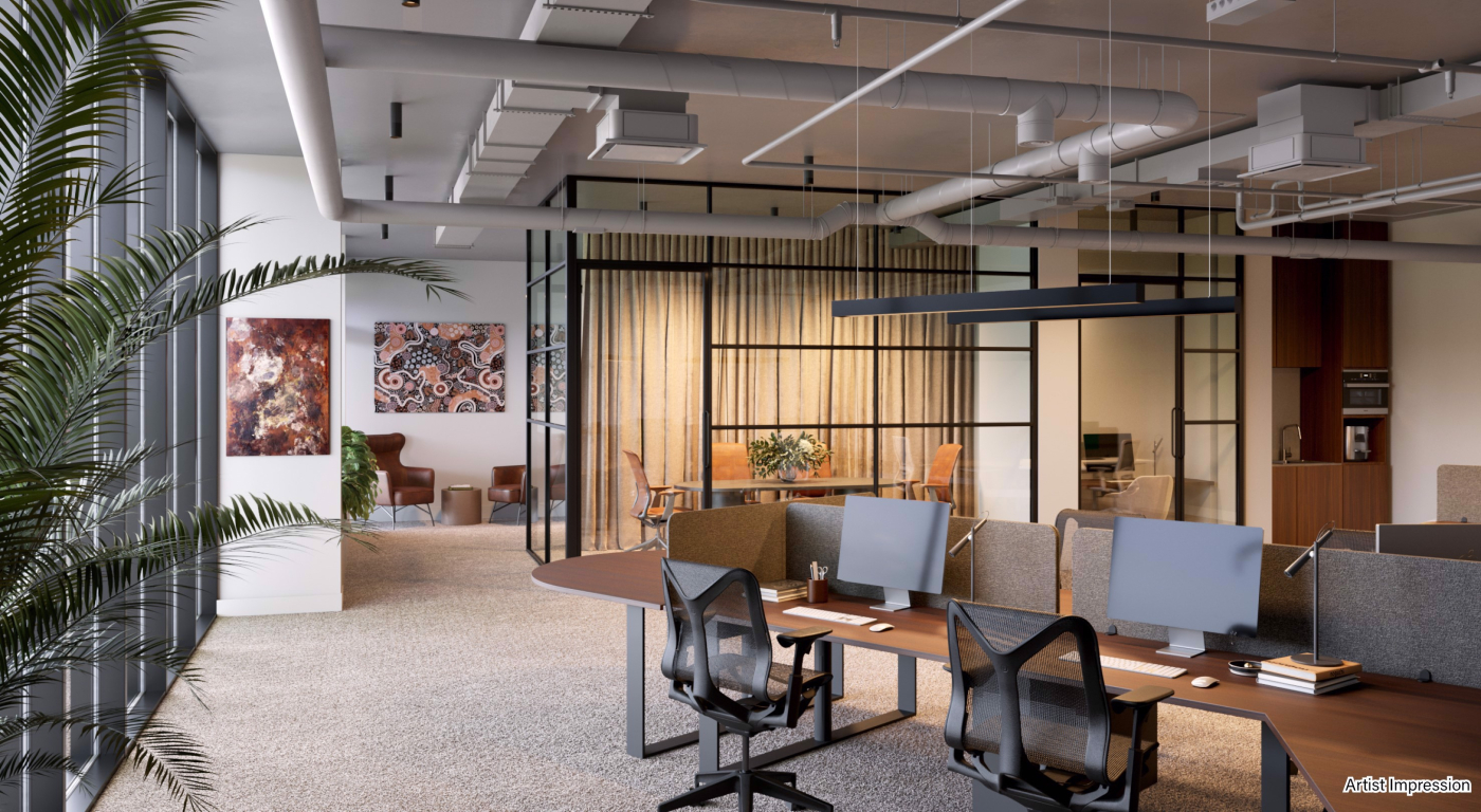 - Brand new turn-key office fit out including multiple meeting rooms, open plan working spaces, boardroom and exclusive kitchen and bathroom facilities.
