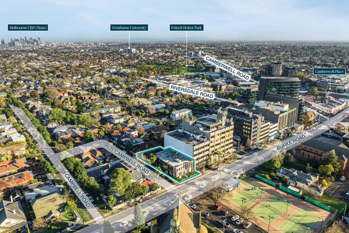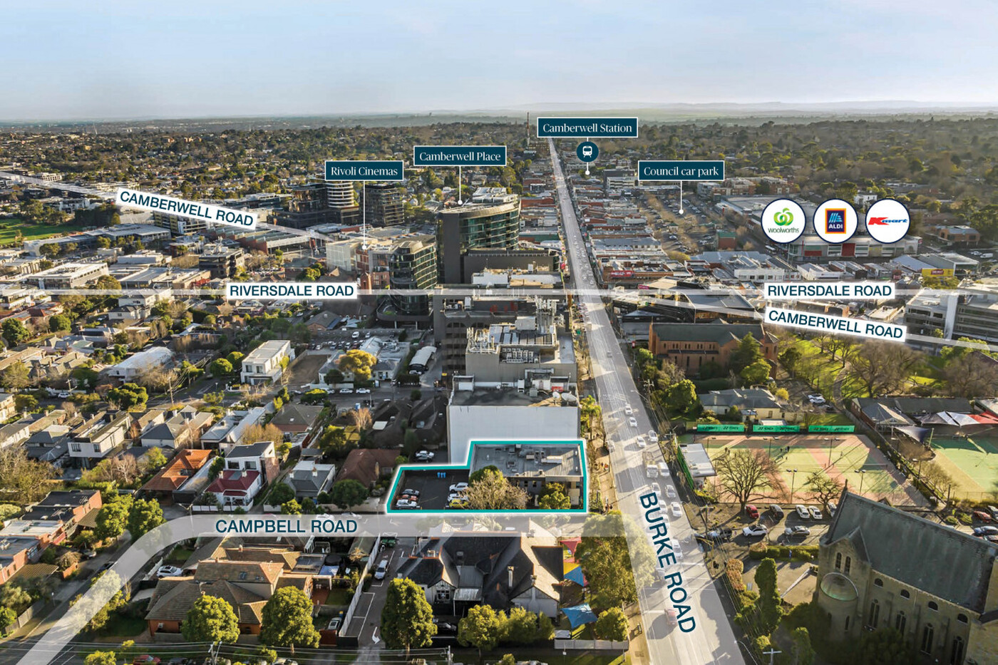 * High exposure corner location with dual street frontages to Burke Road (16m+) and Campbell Road (45m+)