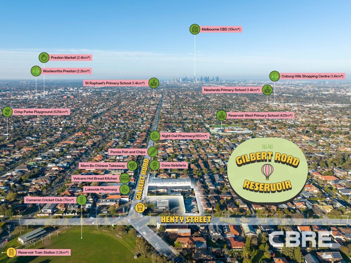 With dual street frontages to Gilbert Road and Henty Street, the subject property is positioned at the centre of a core commercial hub and retail strip.