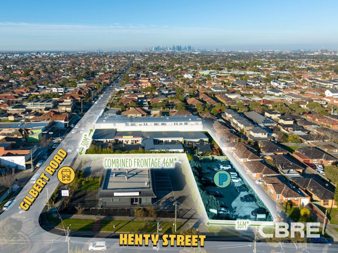 +Outstanding exposure with multiple street frontages of 30m* to Gilbert Road and 15m* to Henty Street