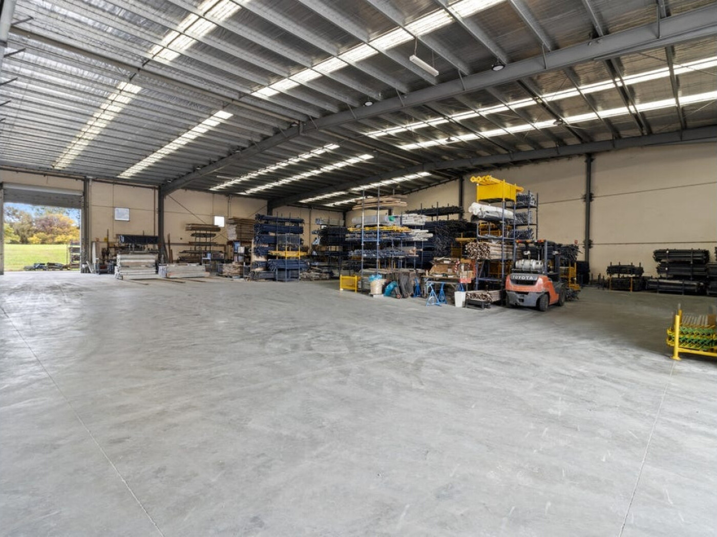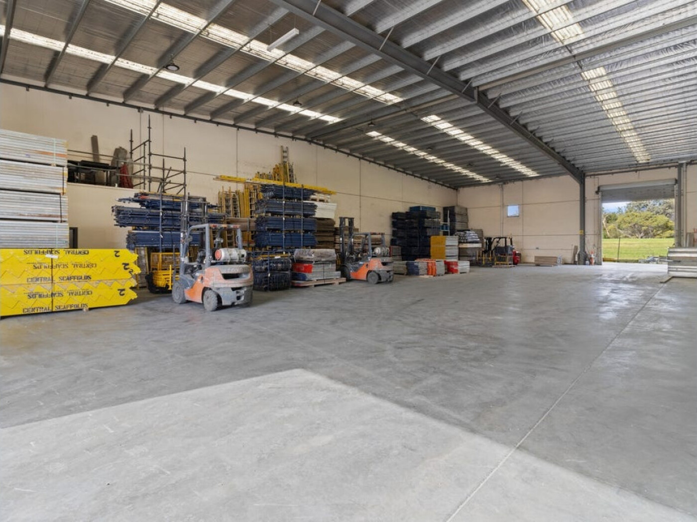 Clearspan and high clearance warehouse with large Roller doors.