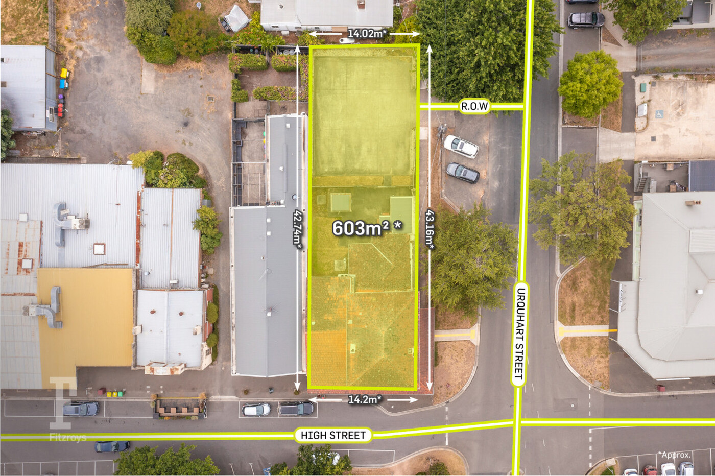 - Wide dual frontage of 14.2m* to High Street and 43.16m* to Urquhart Street