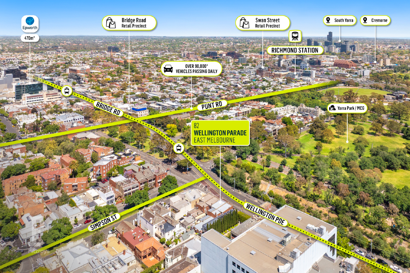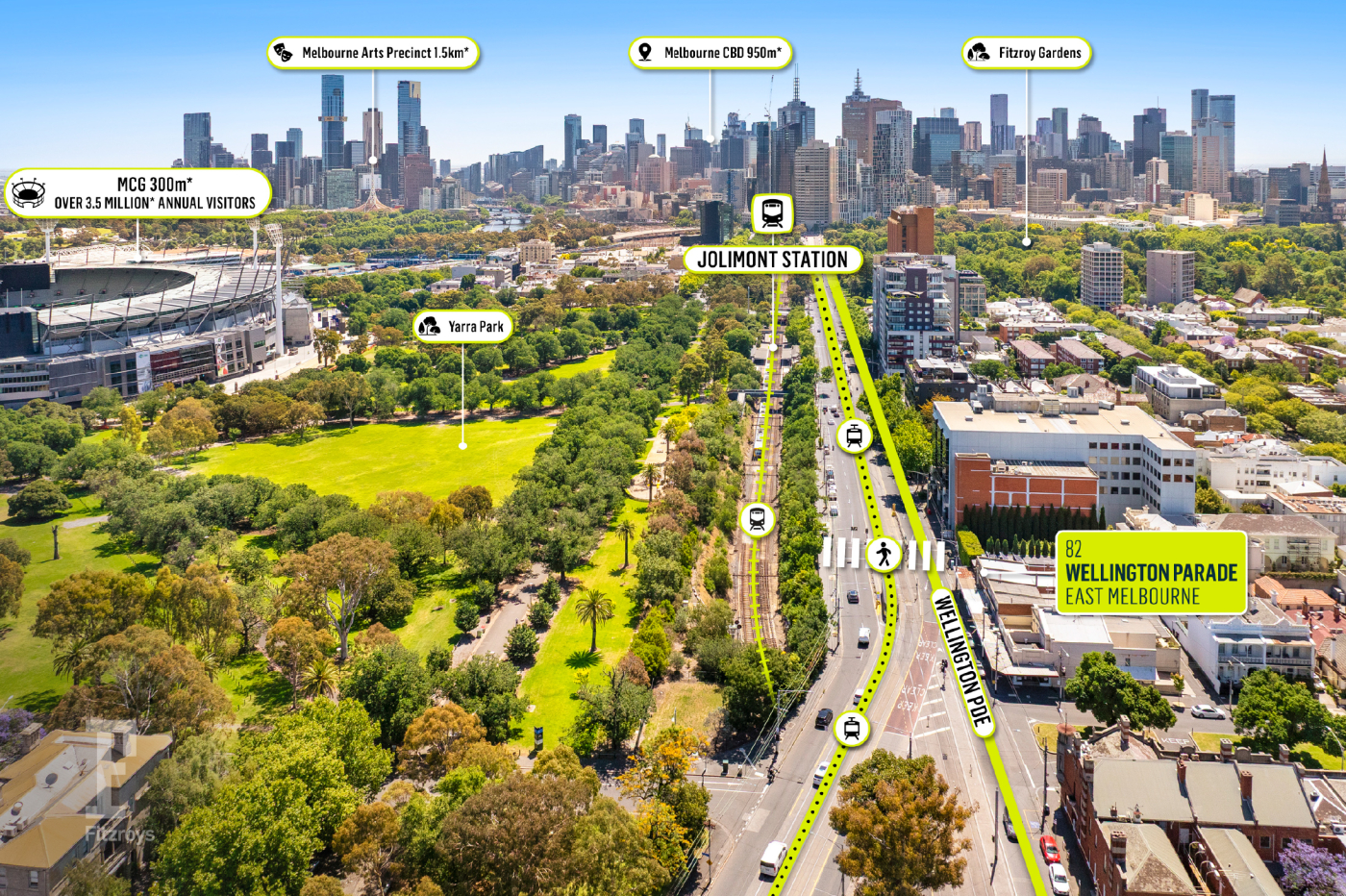 - Strategically positioned close to key traffic generators with a tram stop on the doorstep and Jolimont Train Station 300* metres away