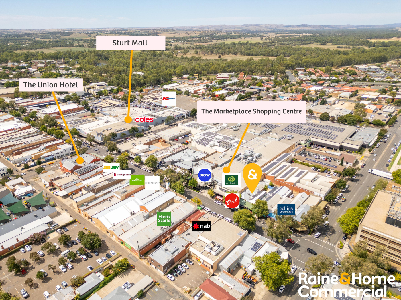 • Wide frontage Wagga Wagga's bustling Main Street.