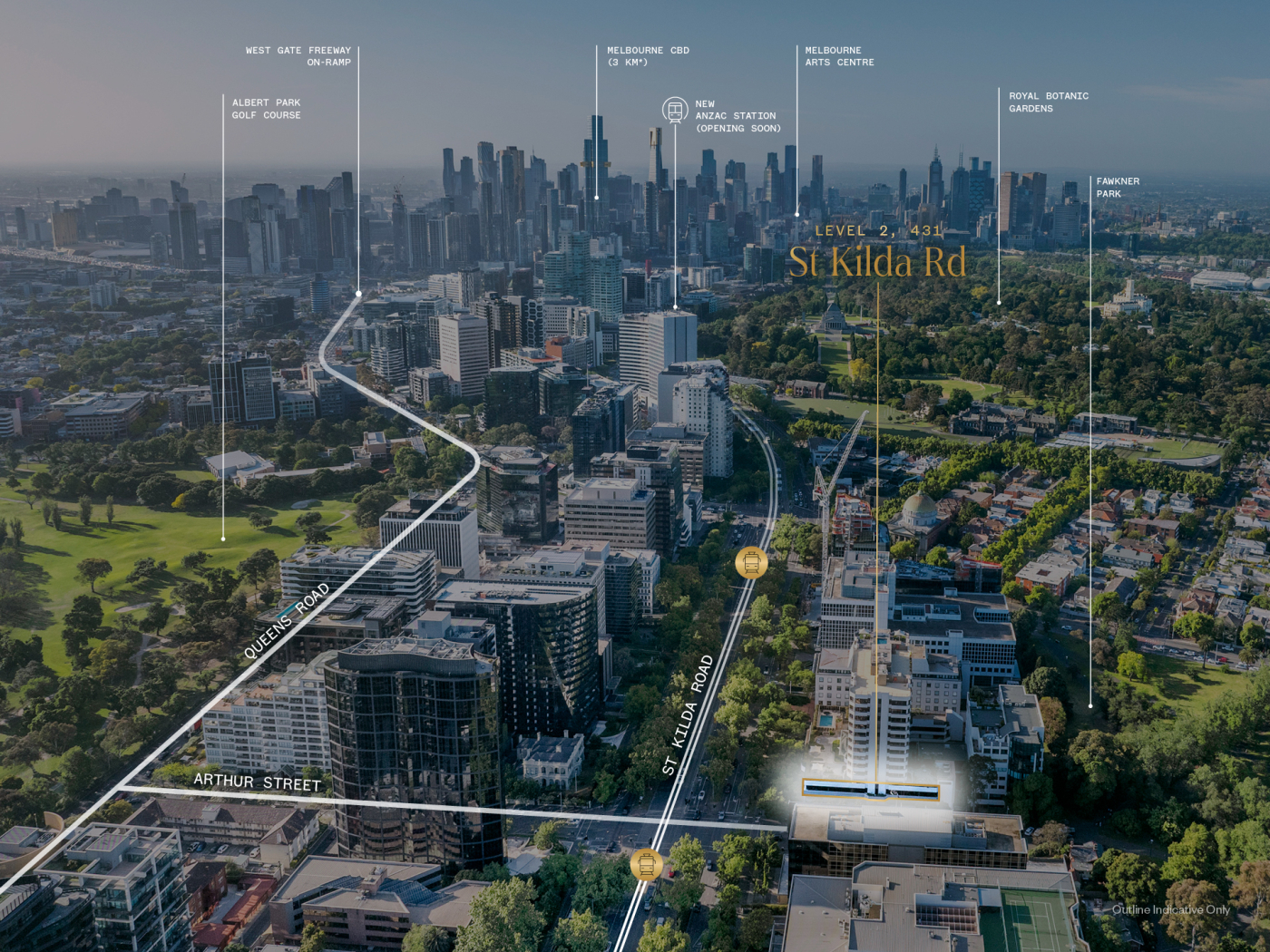 Situated along Melbourne’s premier business corridor, 431 St Kilda Road blends outstanding connectivity with nearby parks, dining, and retail options. The area is bolstered by nearly $2 billion in new luxury residential and hospitality developments, reinforcing its status as a premier destination. Notable projects include the $300 million Carter Building at 448 St Kilda Road and Gurner Group’s $800 million apartment complex at 424 St Kilda Road.