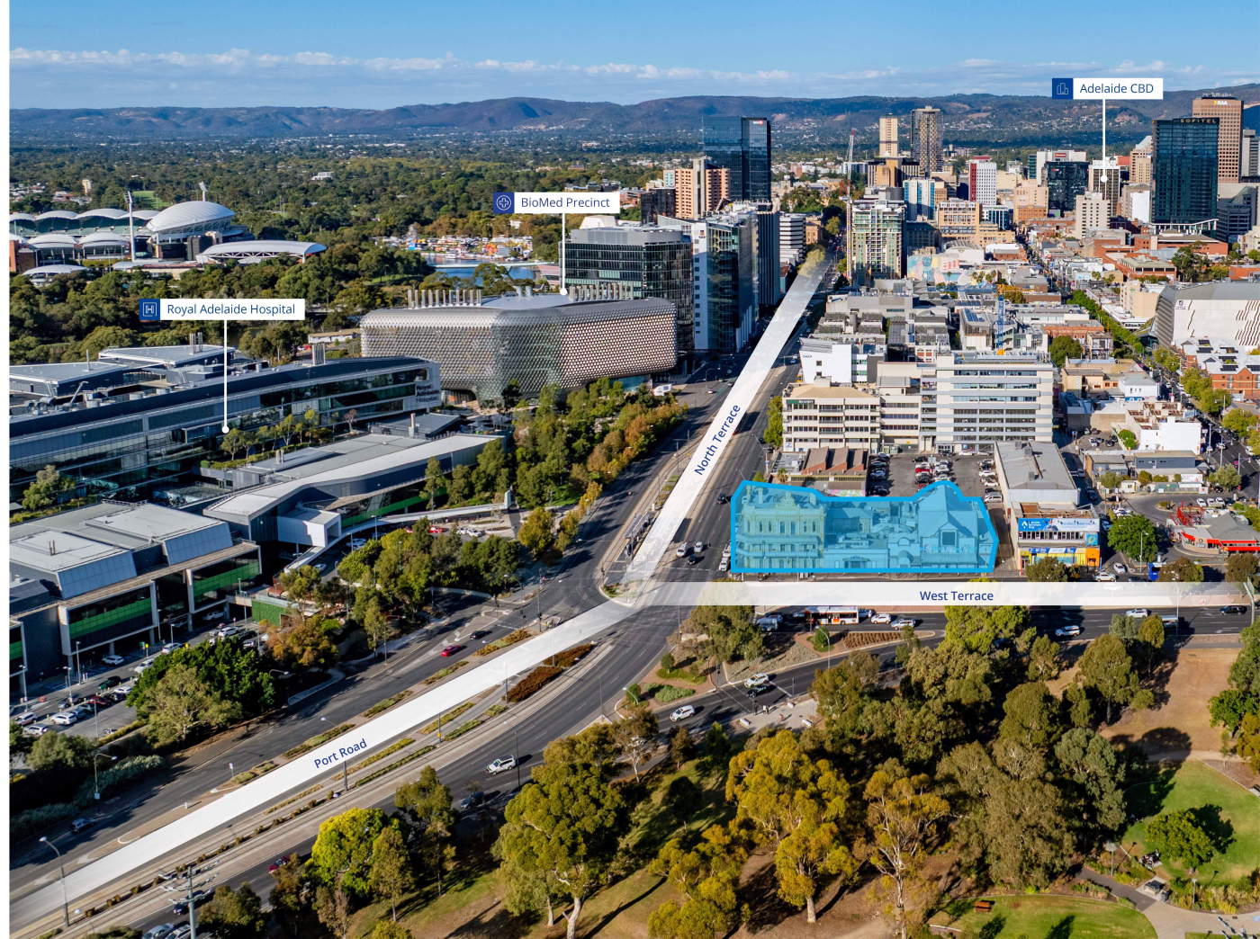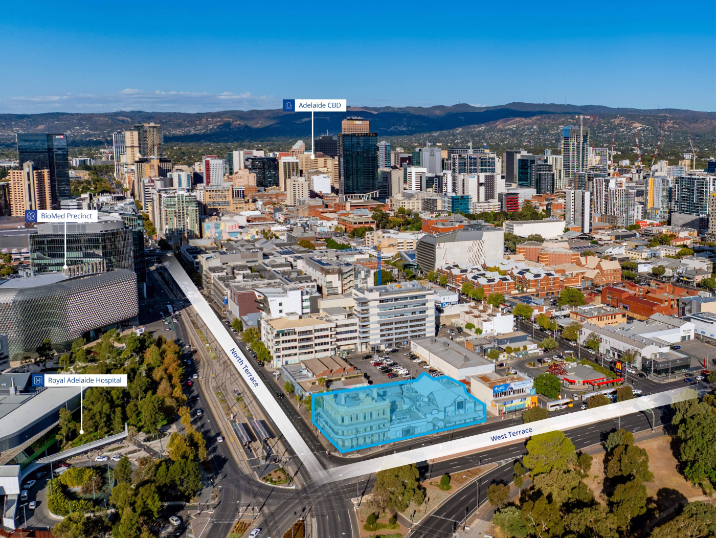 ONE North Terrace offers the truly scarce opportunity to create a landmark mixed-use project on the prime Newmarket Hotel corner site at the gateway between Adelaide’s CBD, BioMed City including Royal Adelaide Hospital (RAH), universities and Park Lands precincts.