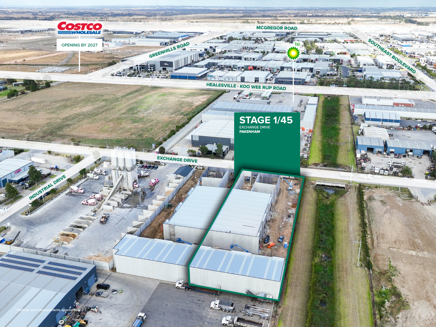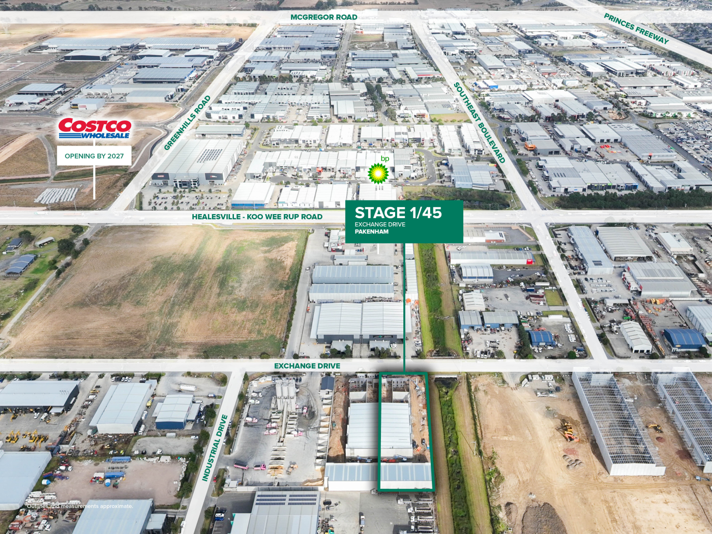 Strategically located with excellent access to the M1 Freeway via Koo Wee Rup Road, this estate is surrounded by major national retailers including Costco, Total Tools, Elders, Bunnings and more. A BP service station sits directly opposite the site, enhancing business exposure and creating a high-visibility environment ideal for growth. With the site being CIPT reformed, purchasers may also benefit from significant stamp duty savings — up to approximately $57,172.