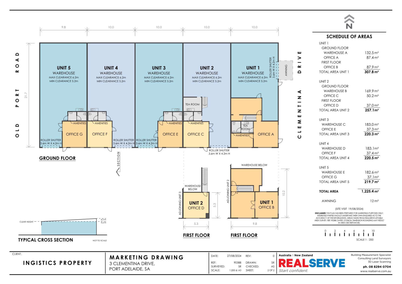 - Five recently refurbished modern office warehouse units with a combined lettable area of 1,225m²*
