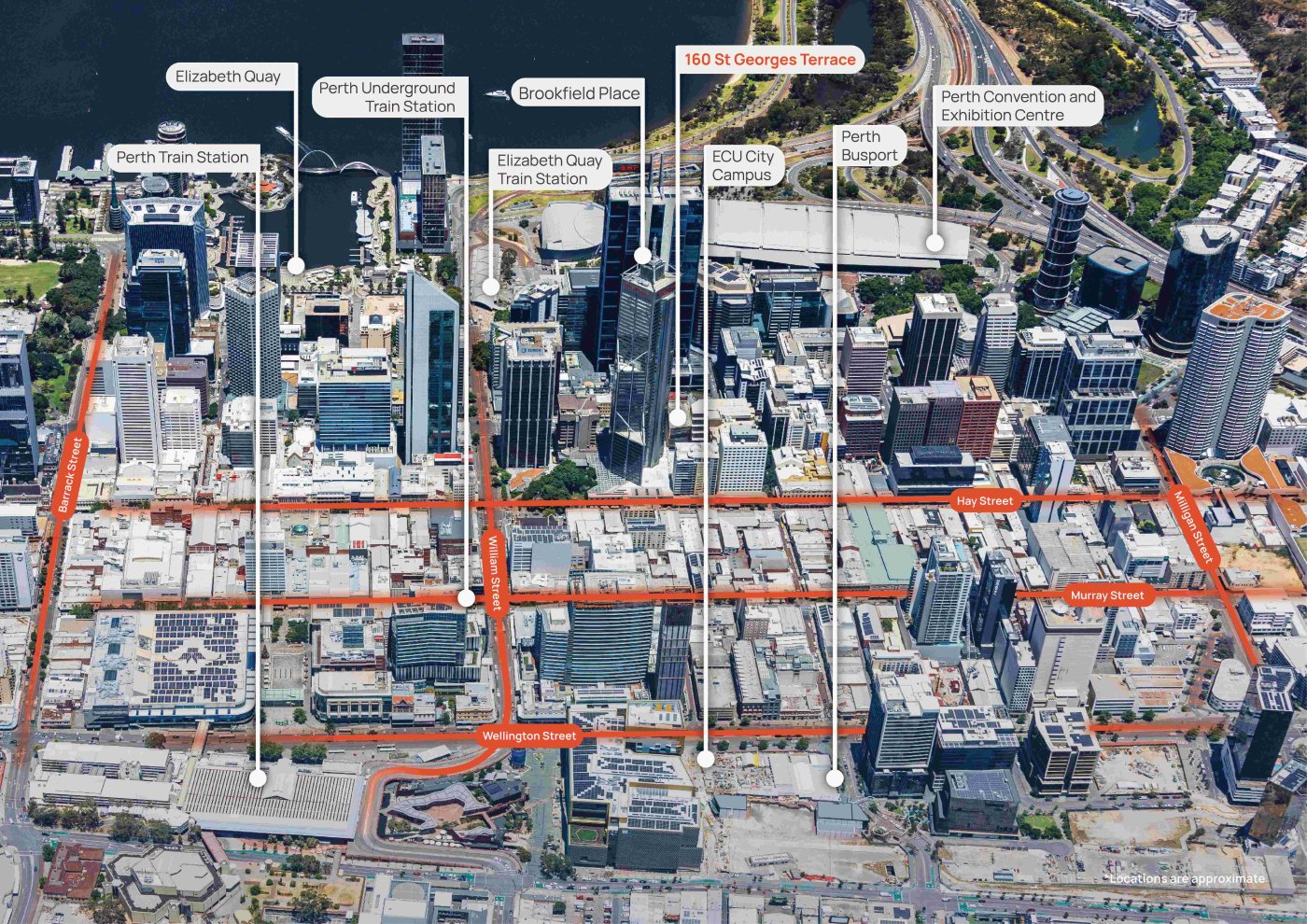 160 St Georges Terrace is a central office and retail building in the heart of Perth, located directly next to Central Park and opposite Brookfield Place, offering outstanding access to amenity and transport links.